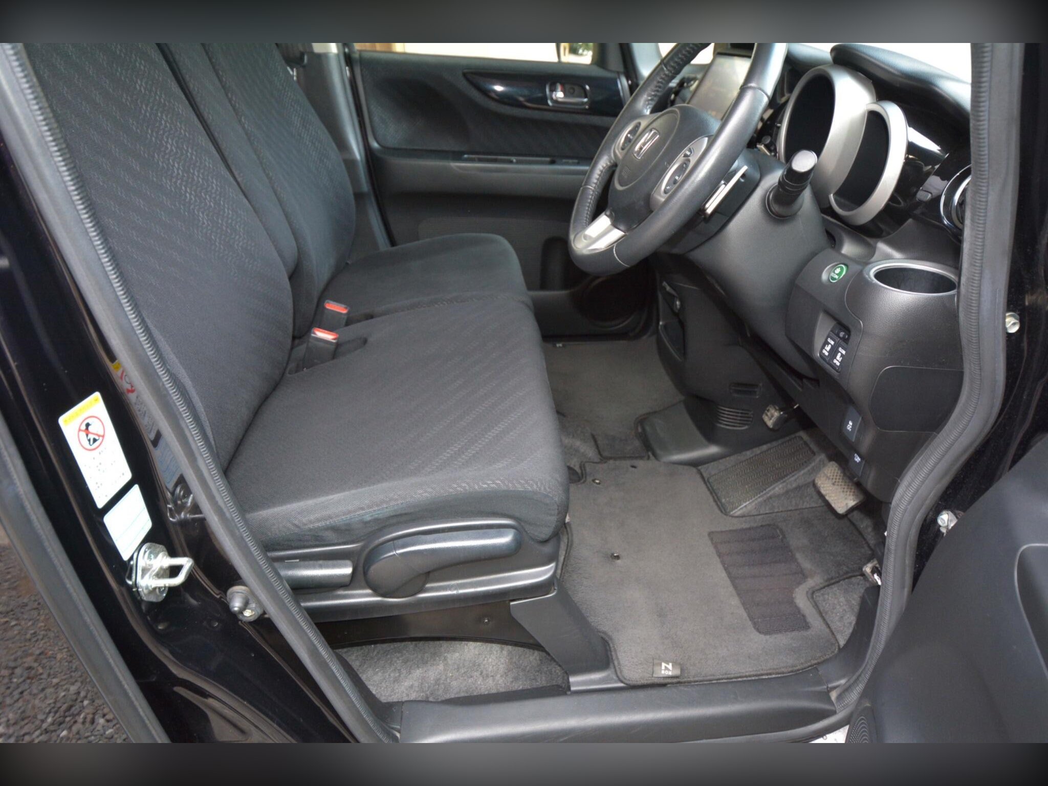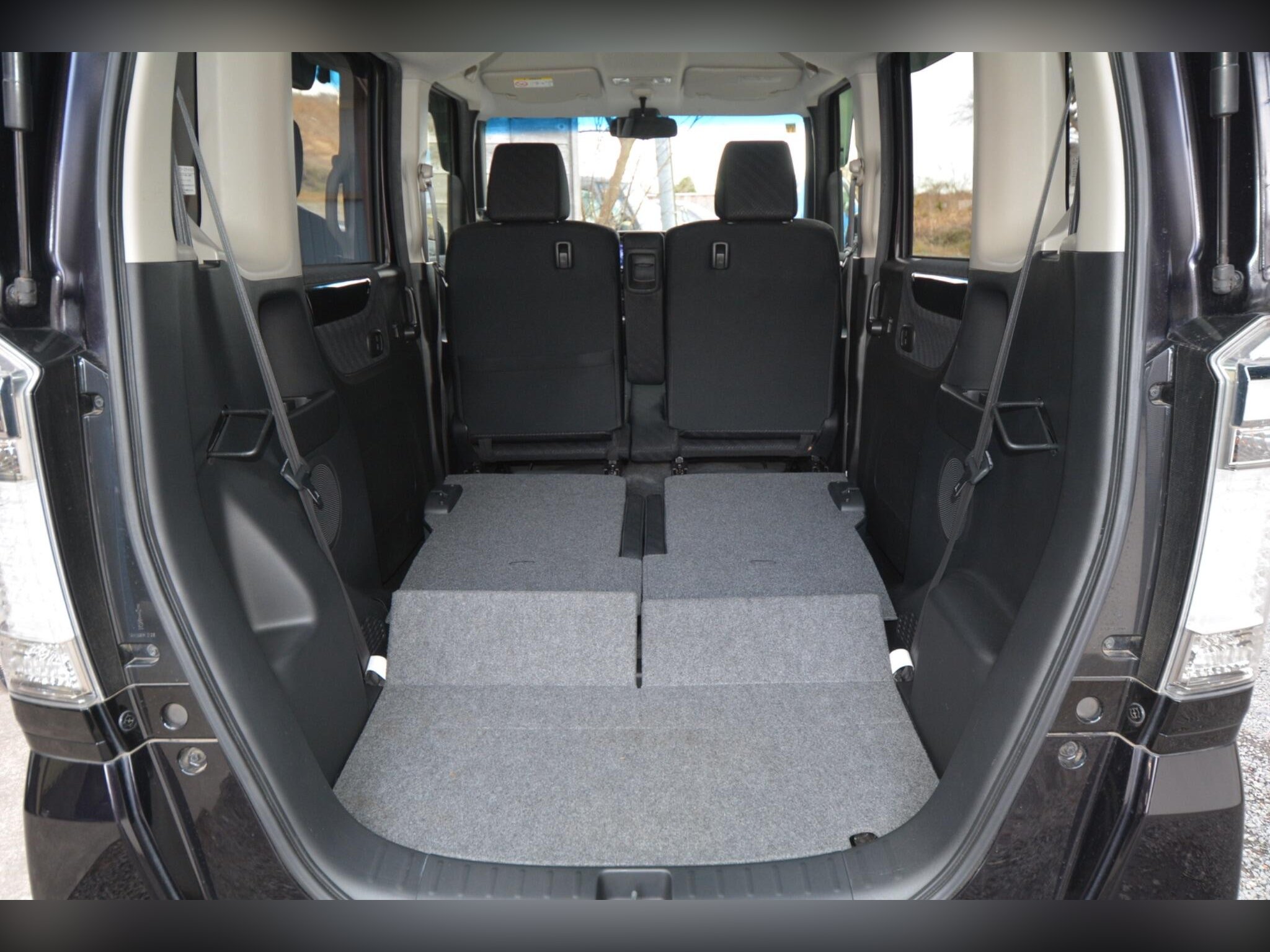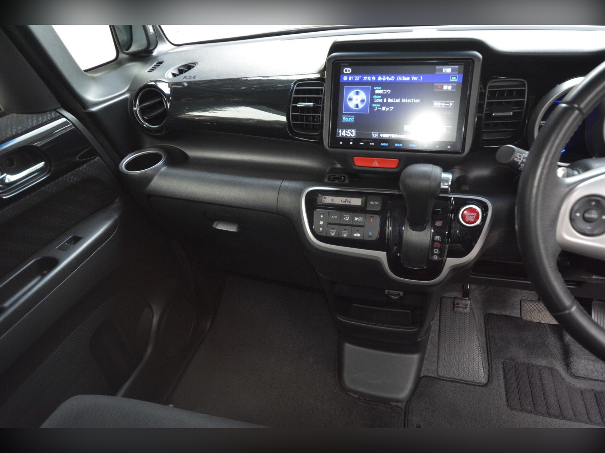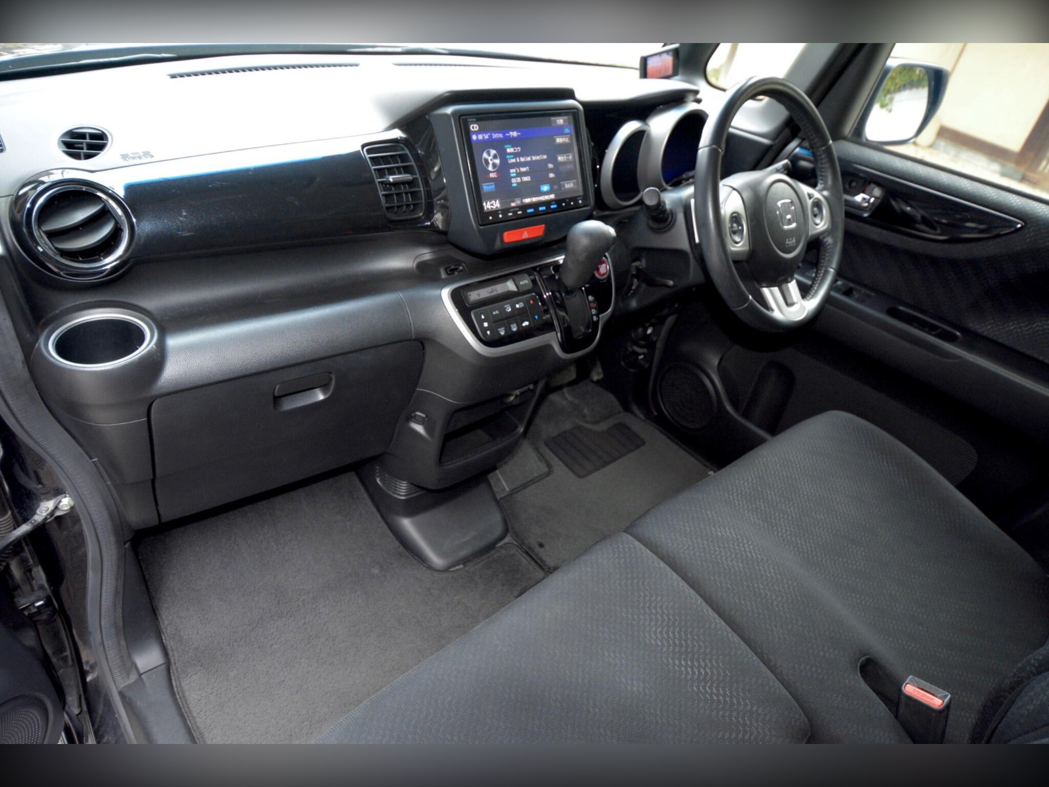 This high?spec model includes front fog lights, HID headlights, winker mirrors, privacy glass, rear spoiler, factory 15” alloy wheels with radial tyres, remote power slide doors and a rear camera. Inside you’ll find a leather steering wheel, climate control, cruise control, paddle shift, idle stop function, HDD/CD/SD/Bluetooth audio, dealer original floor carpets and two smart keys