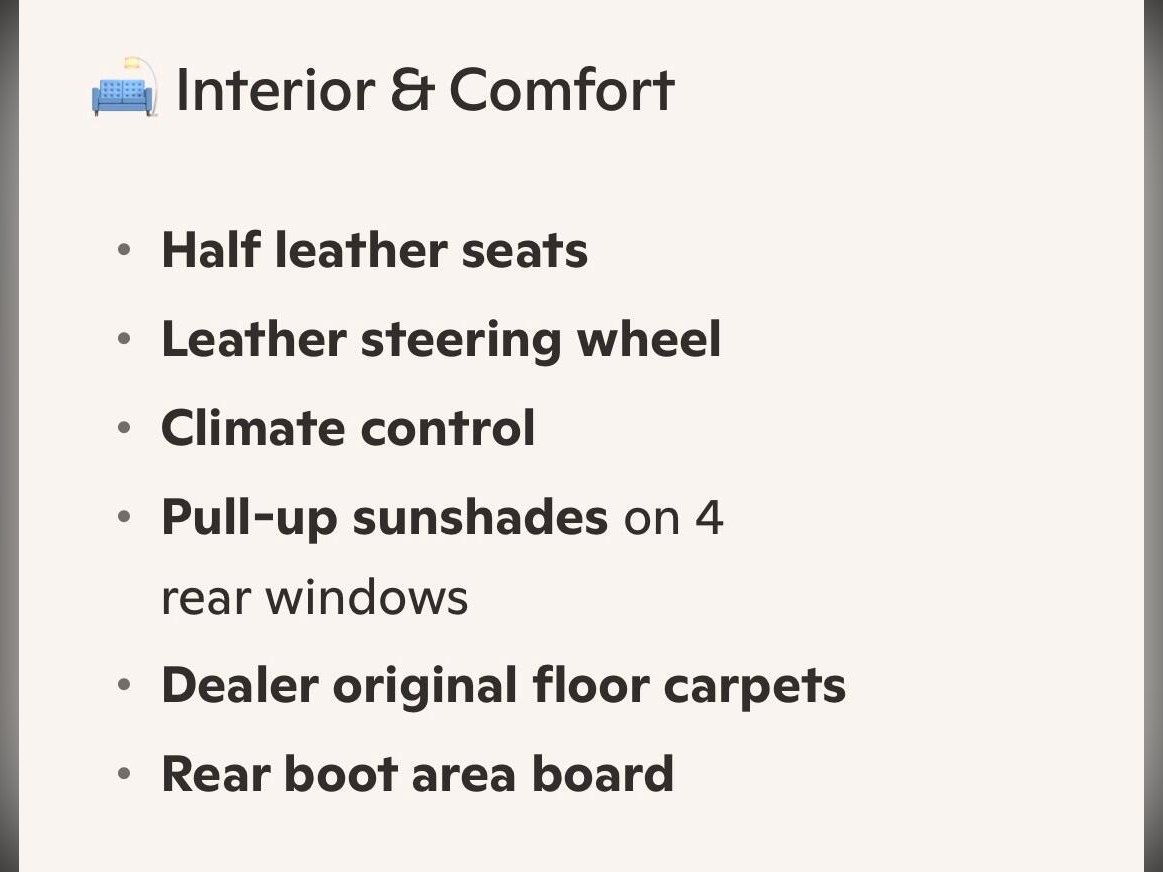 Recently MOT’d, with engine service and transmission service just carried out, and no advisories. The car drives beautifully with no warning lights after extended testing. The engine is smooth and the automatic gearbox delivers seamless gear changes.