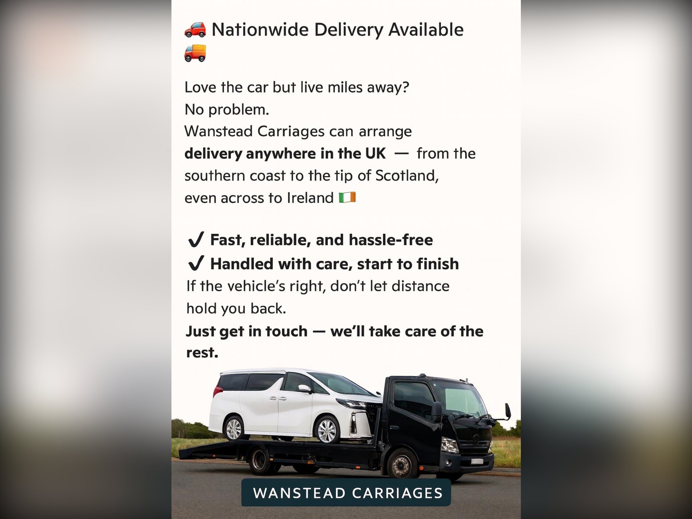All vehicles are HPI checked, fully inspected, and prepared to the AA Cars Standards, approved by the Chartered Trading Standards Institute, giving you complete confidence when purchasing from Wanstead Carriages.