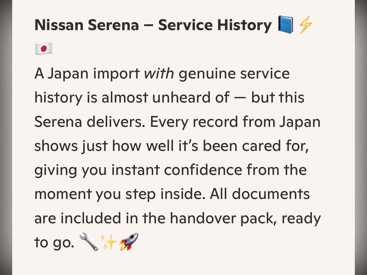 Nissan Serena Additional Information