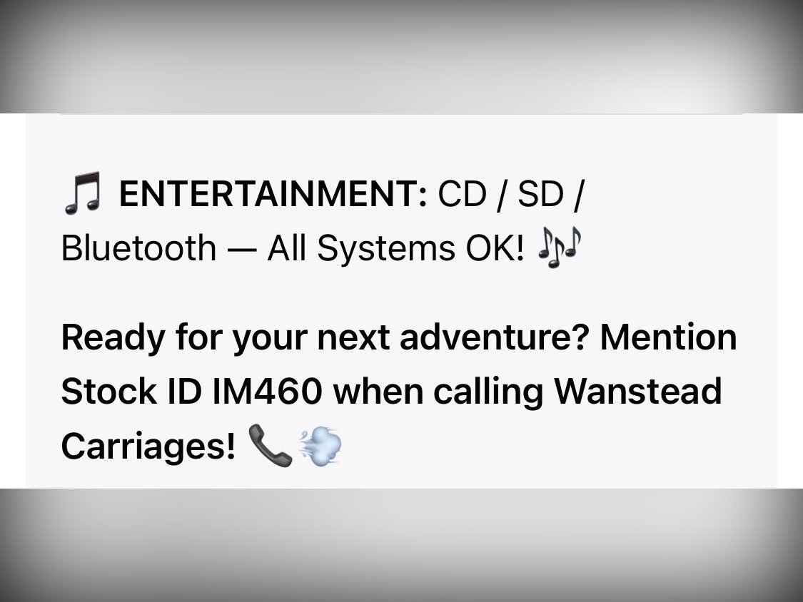 • ENTERTAINMENT: CD/SD/Bluetooth (All OK) to keep the family entertained.