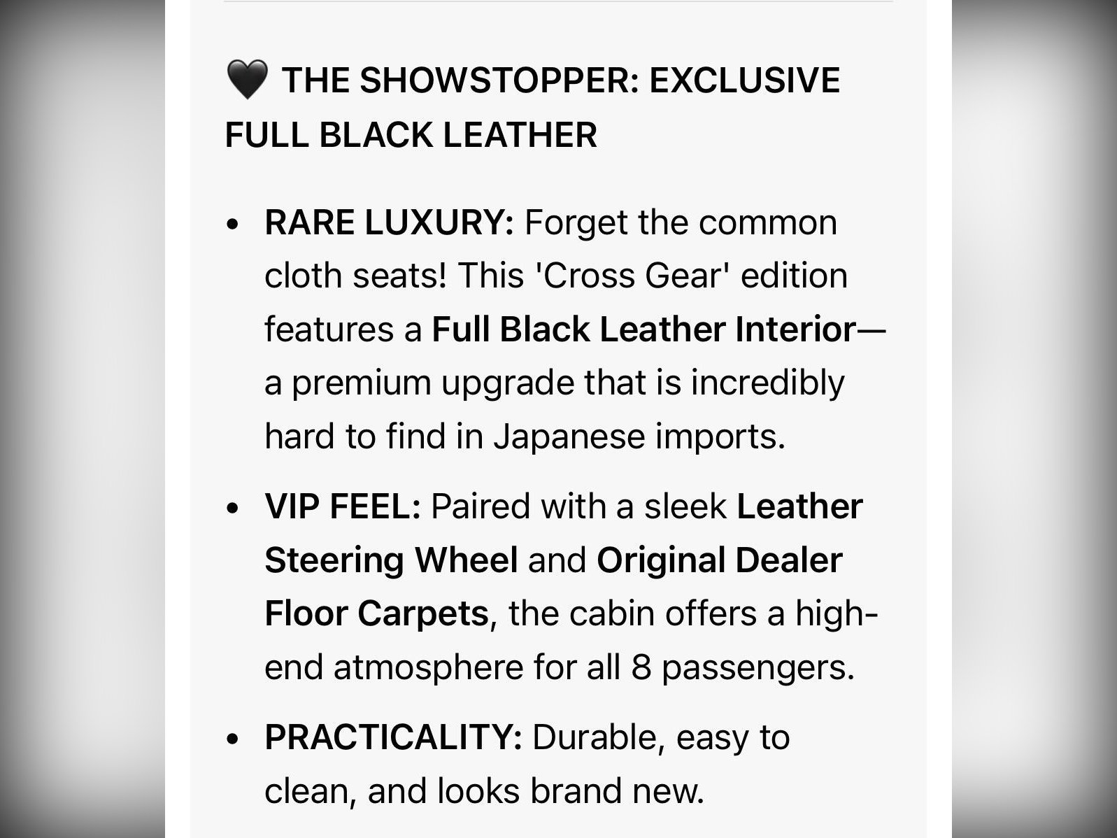 This is STOCK ID: IM460, and it is arguably the finest Nissan Serena (HFC26) in the country. While most Serenas offer basic cloth, this exclusive 'Cross Gear' V-Selection boasts a FULL BLACK LEATHER INTERIOR—a feature so rare it’s practically unheard of in these imports. It’s luxury, durability, and style rolled into one.
