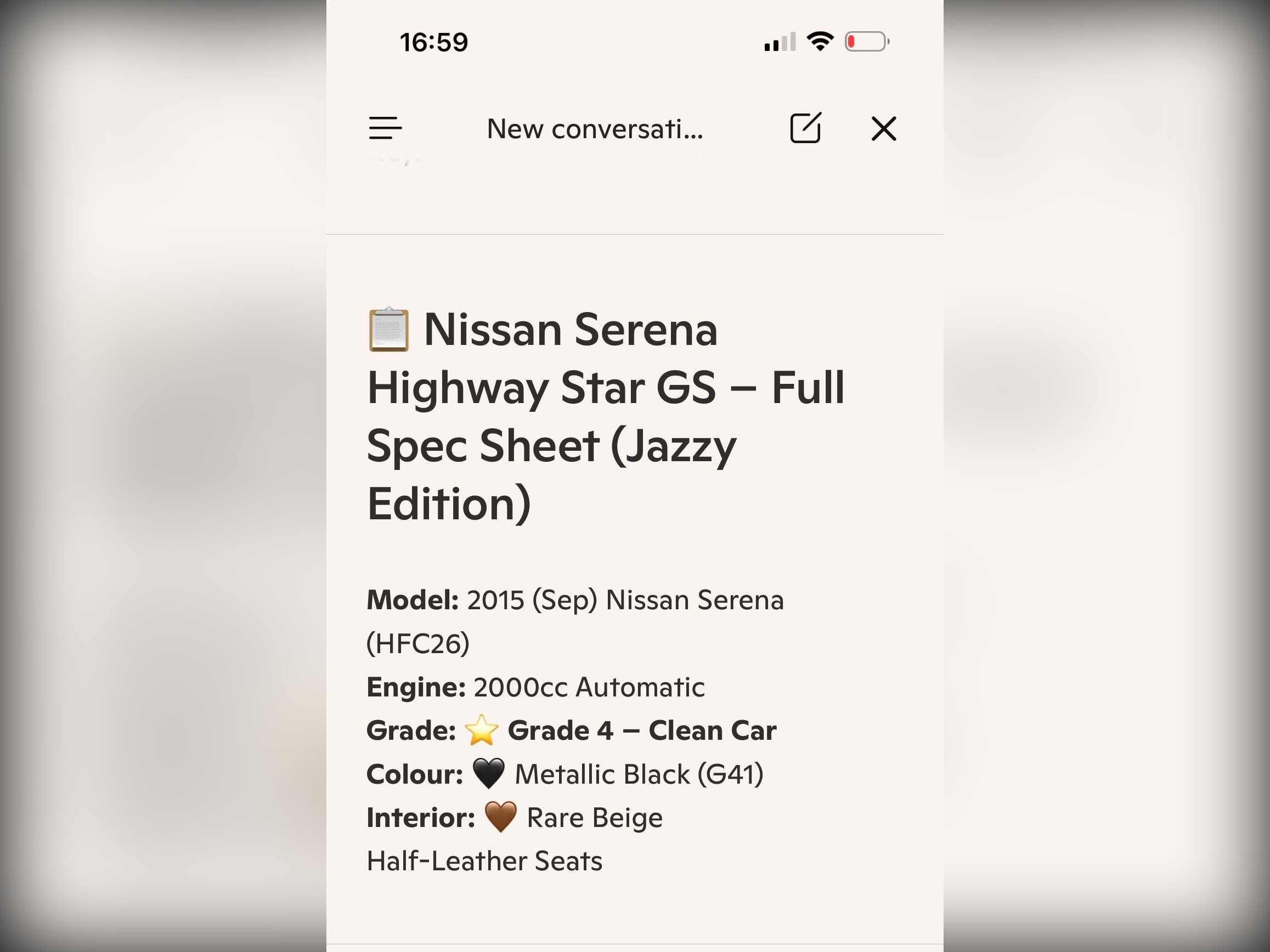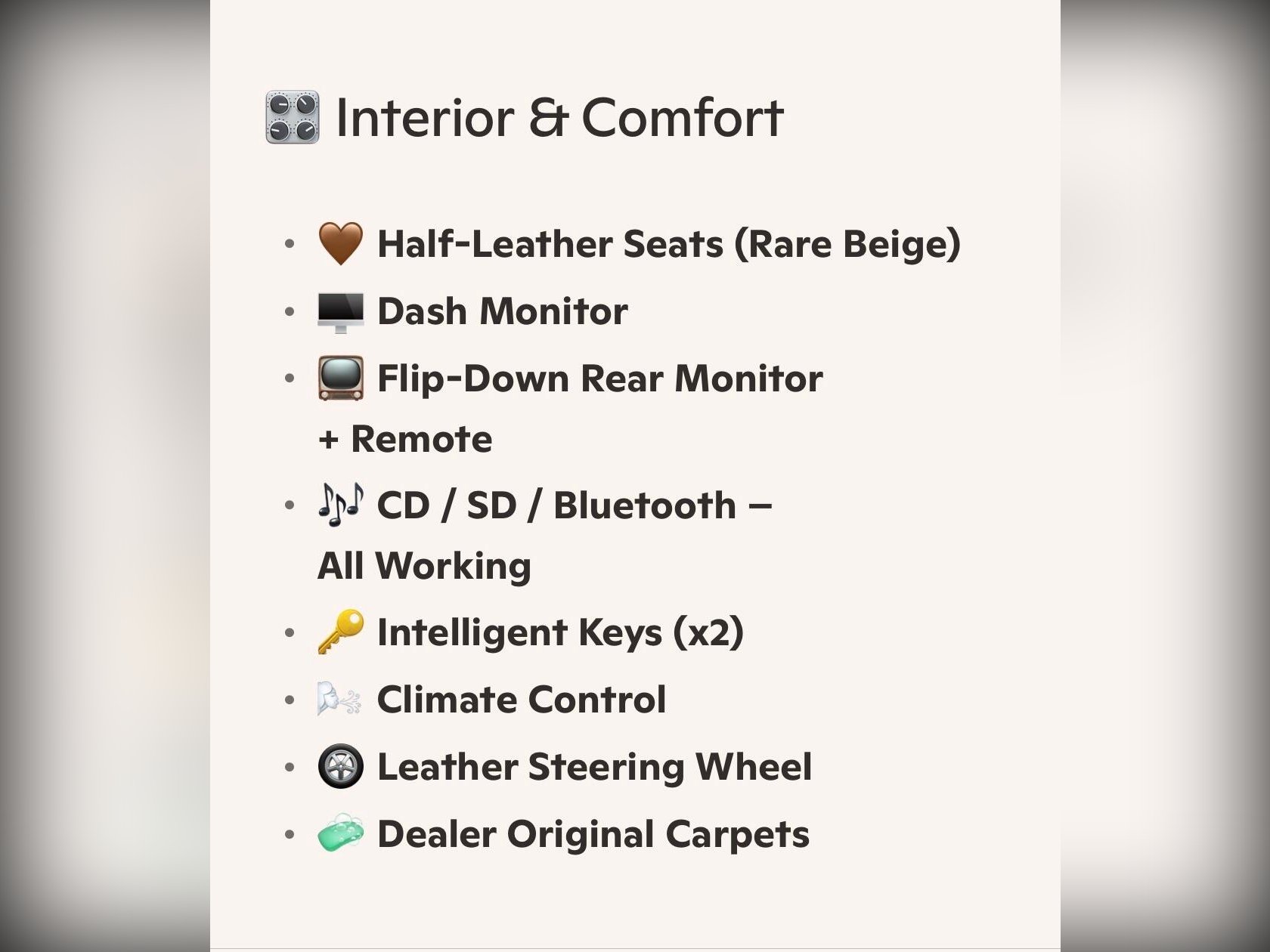 With just 64,000 miles (104,000 km), it drives exactly as a well?kept Serena should. After an extended test drive, it showed no warning lights, and both the engine service and transmission service have just been completed. It also comes with a verified VX report—Japan’s equivalent to HPI—confirming no hidden accidents or mileage issues.