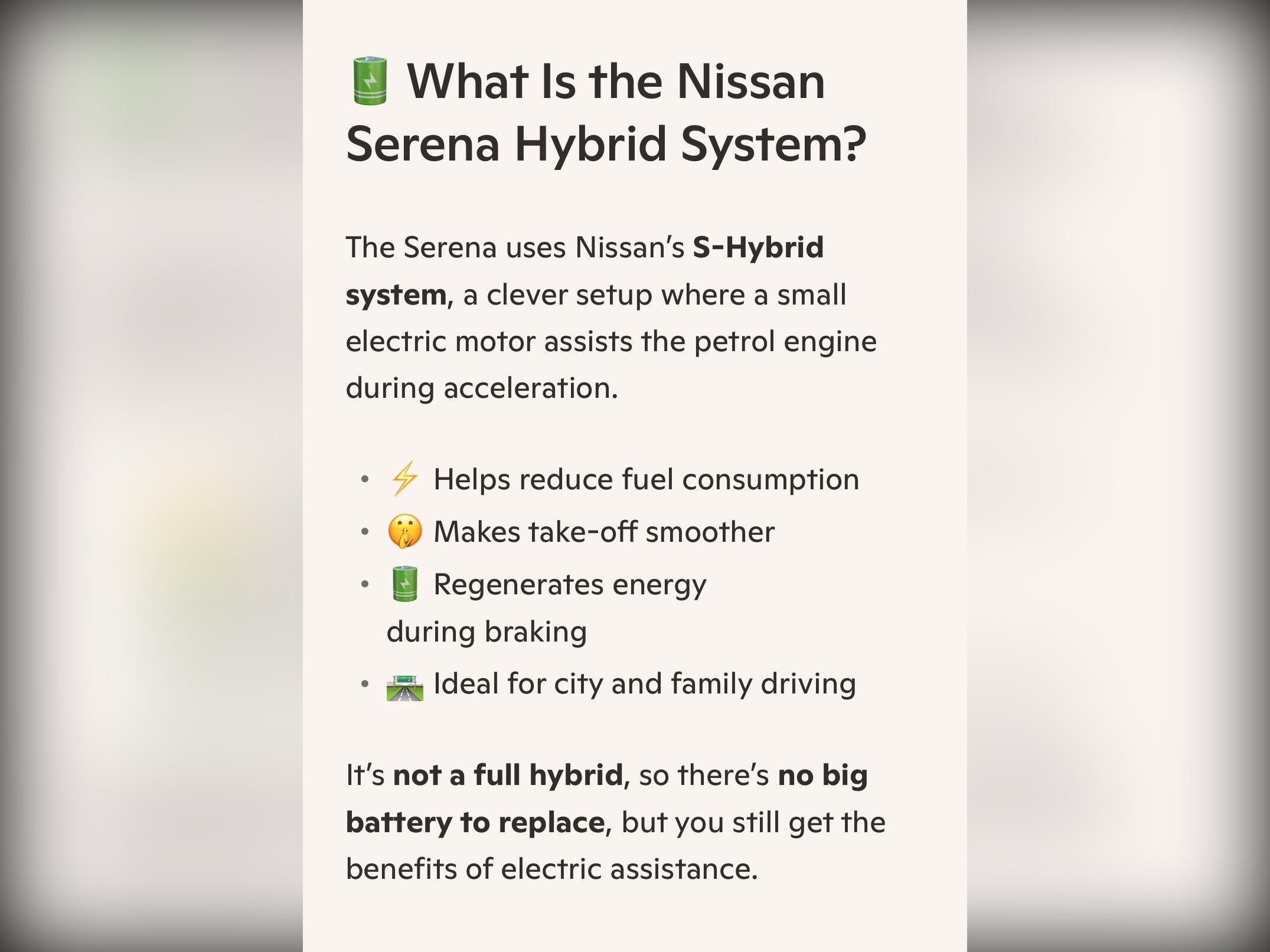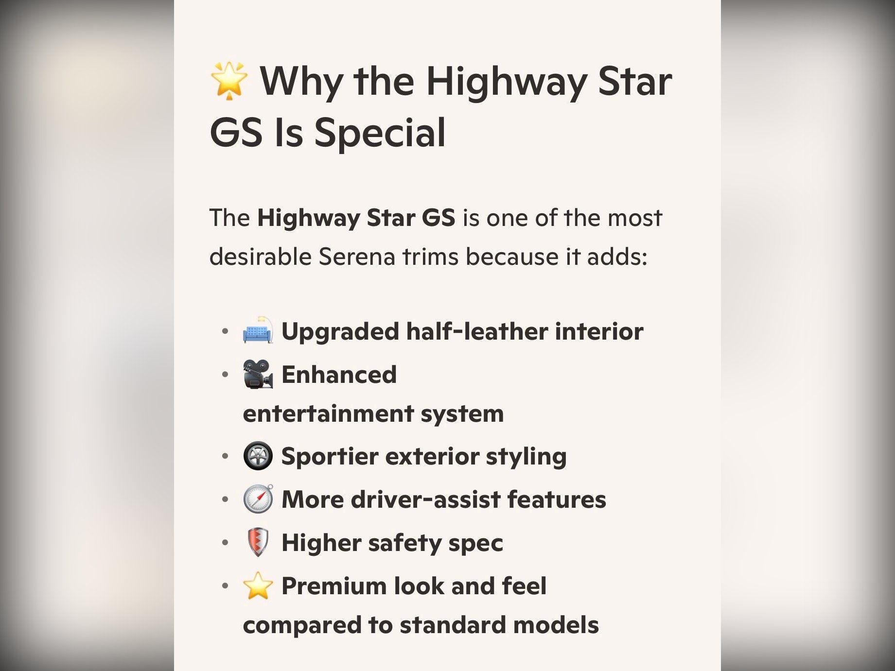 Nissan Serena Additional Information