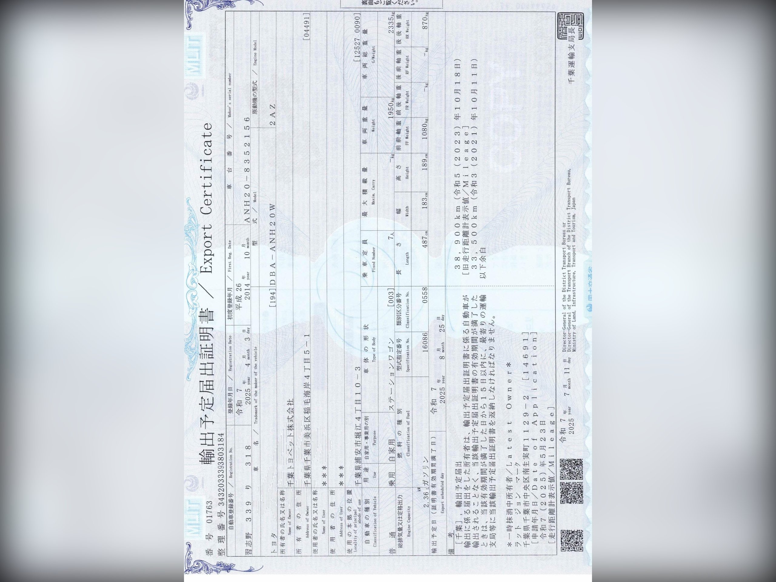 This vehicle comes with a verified VX report, equivalent to the UK HPI report, confirming no mileage discrepancies or hidden accidents. A certificate will be provided.