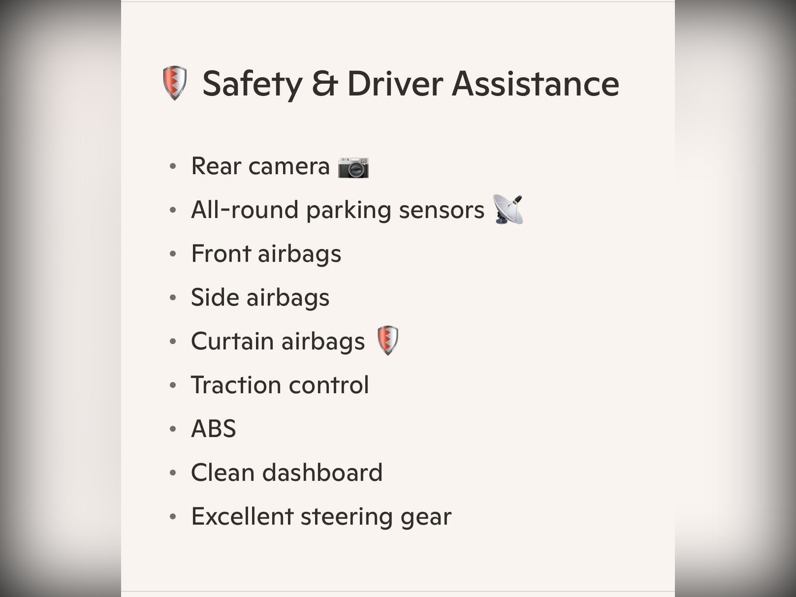 • All-Round Parking Sensors & Rear Camera