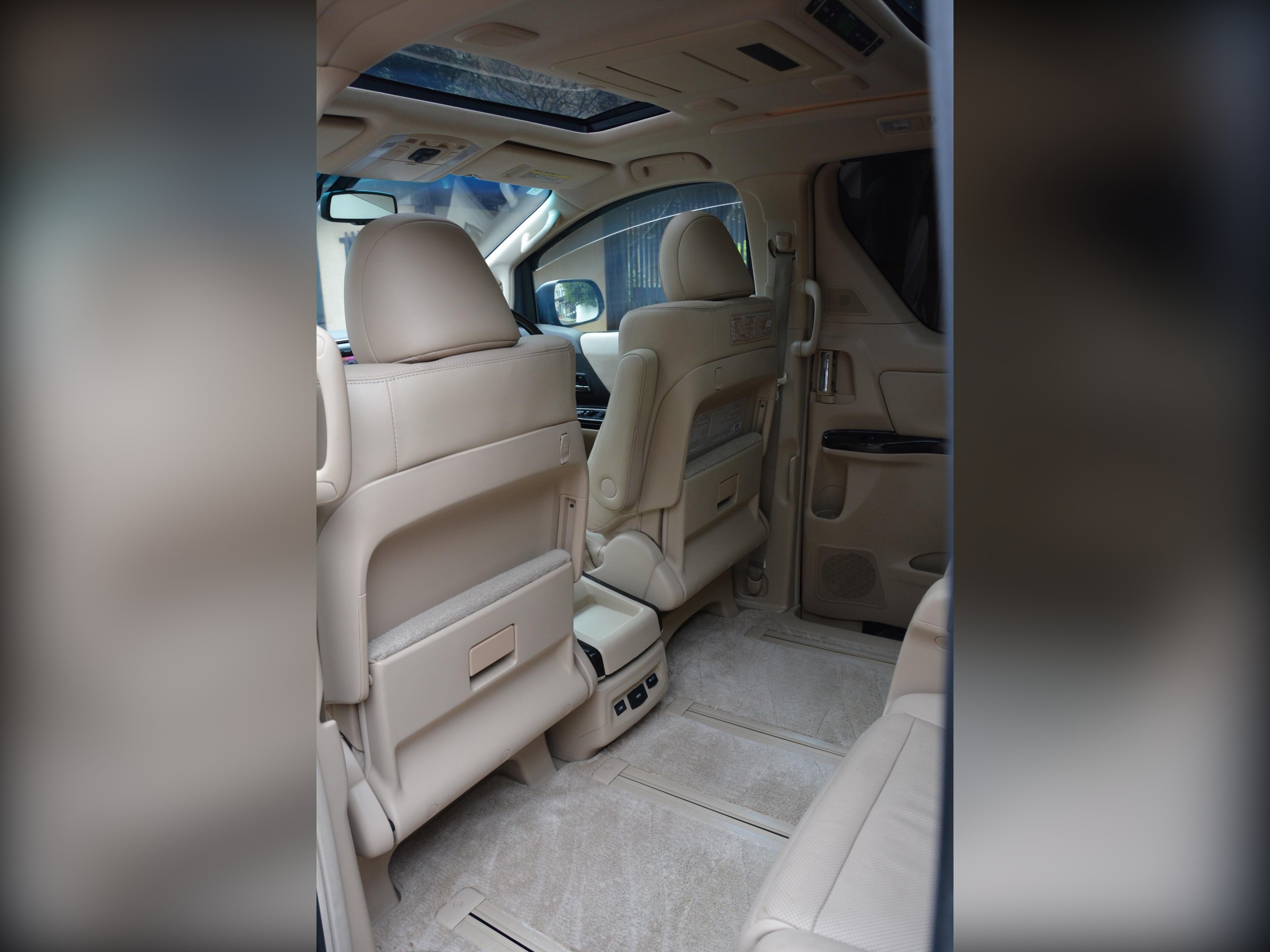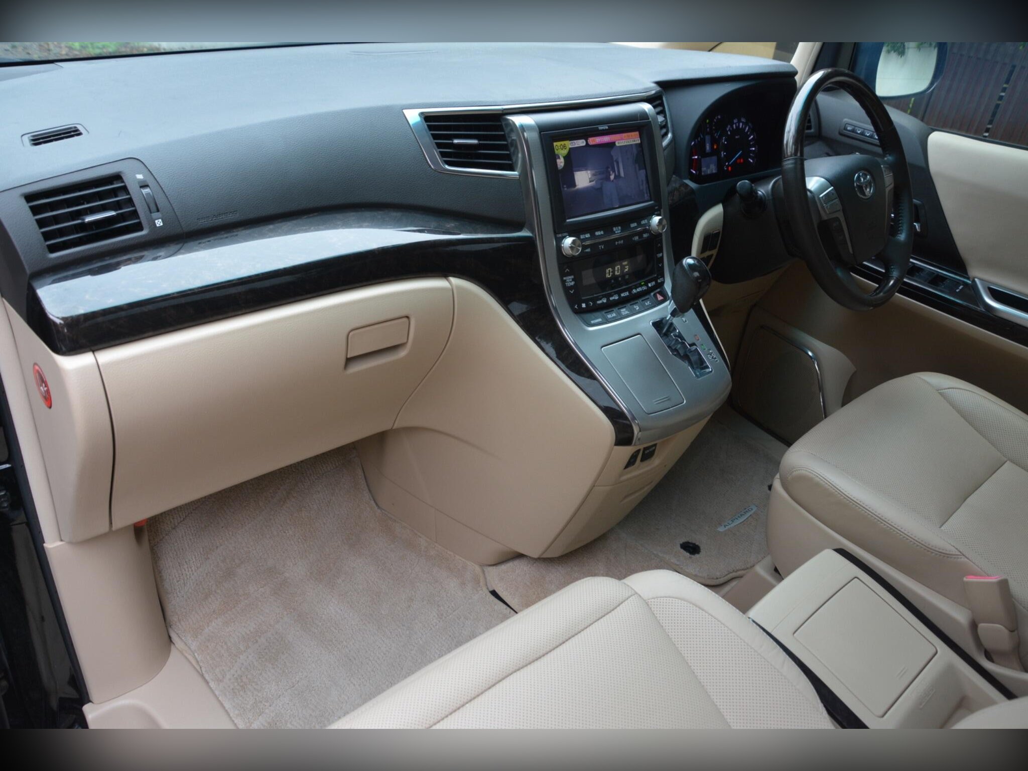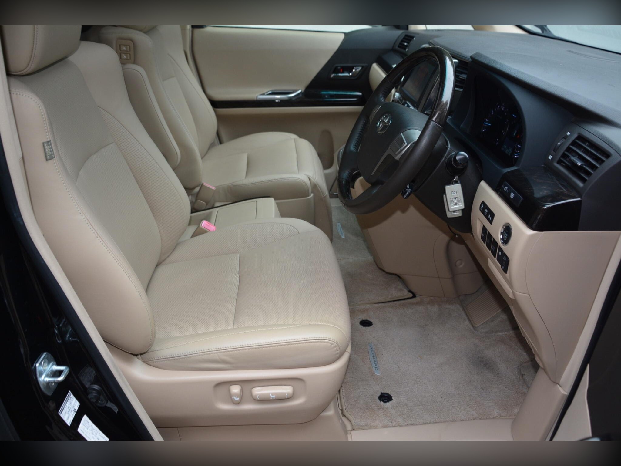 Inside, the Alphard offers a luxury beige leather interior with heated front seats, driver memory seat, and power assist front and middle seats. Twin sunroofs, premium sound system, dash monitor, flip?down rear screen, HDD/CD/Bluetooth/USB connectivity and rear remote all add to the comfort. Dealer original floor mats included.