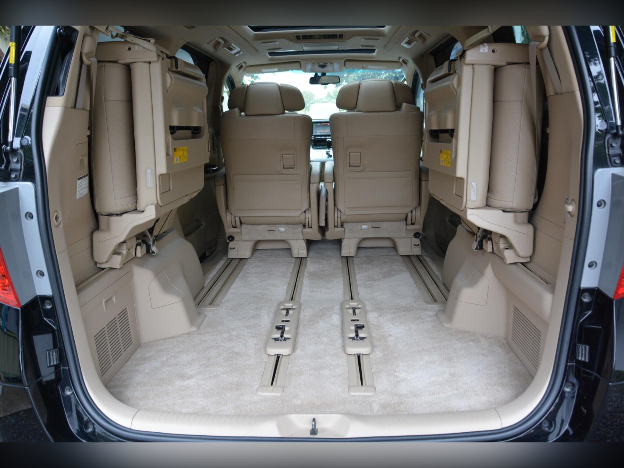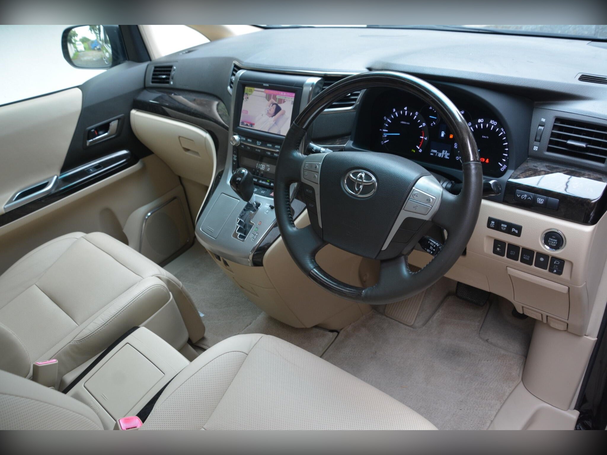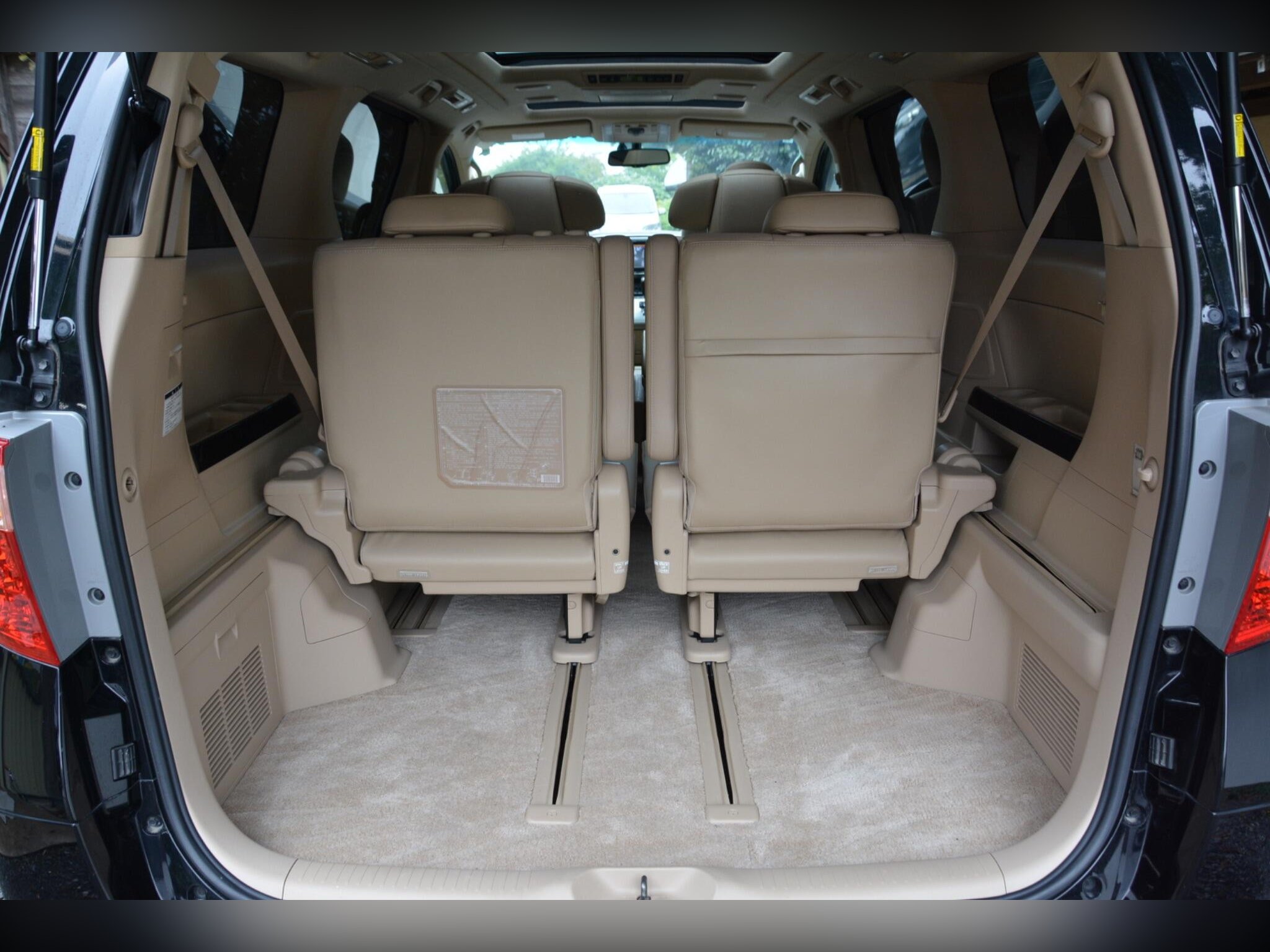 Inside, the Alphard offers a luxury beige leather interior with heated front seats, driver memory seat, and power assist front and middle seats. Twin sunroofs, premium sound system, dash monitor, flip?down rear screen, HDD/CD/Bluetooth/USB connectivity and rear remote all add to the comfort. Dealer original floor mats included.