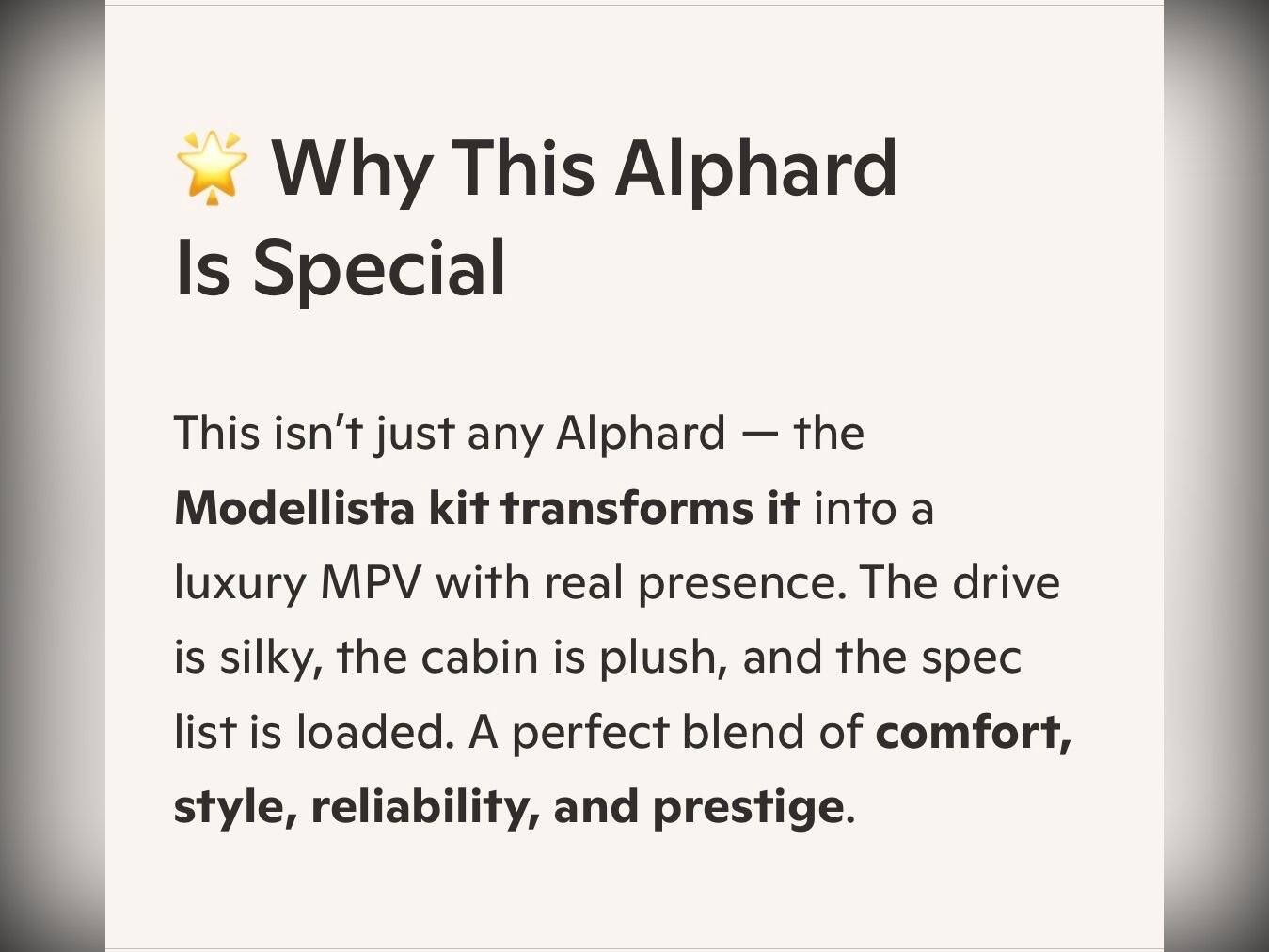 Toyota Alphard Additional Information