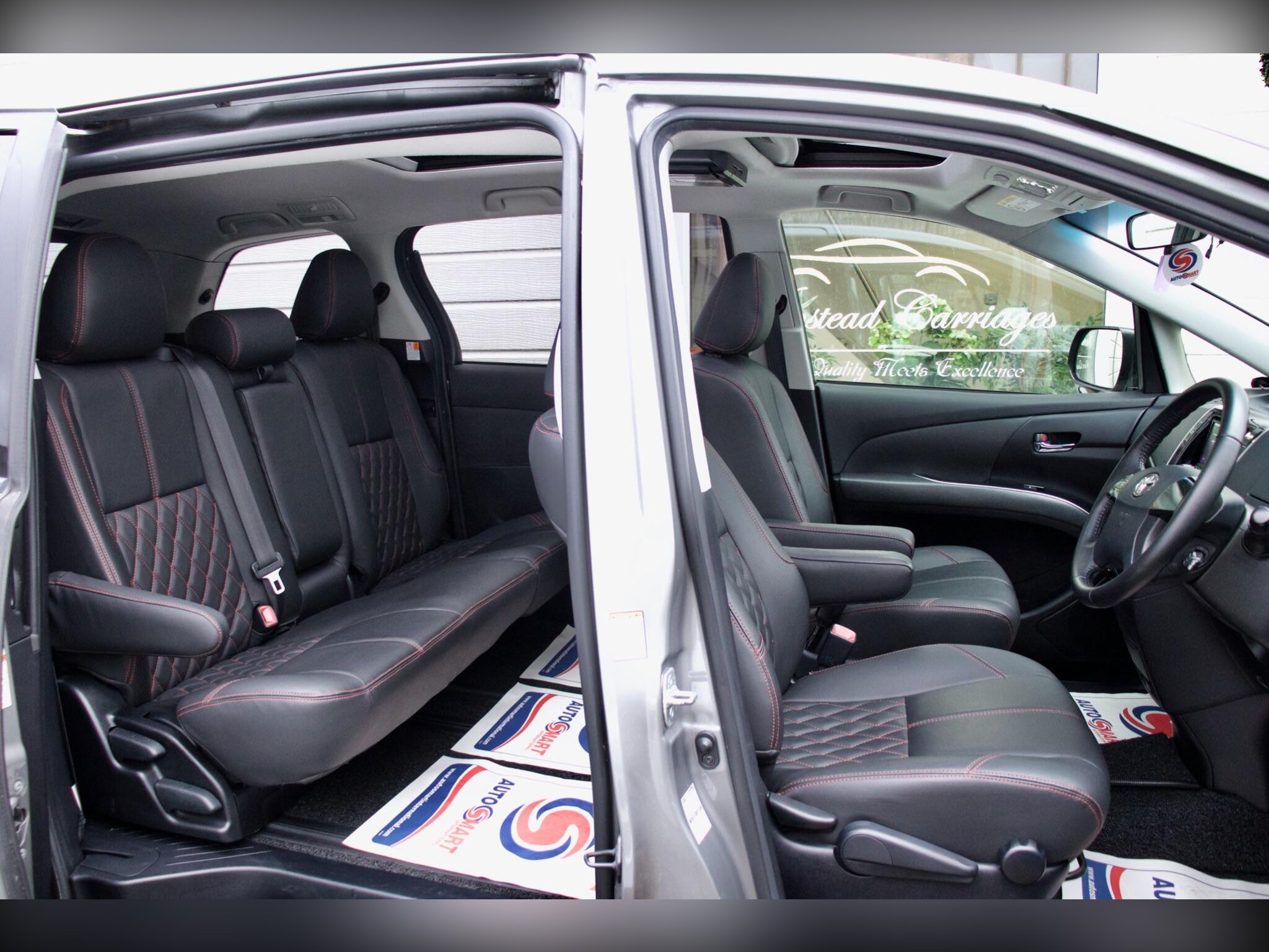 WE ARE DELIGHTED TO BE SELLING THIS STUNNING WELL LOOKED AFTER LOW MILEAGE ESTIMA THAT WE HAVE JUST IMPORTED ..PRESENTED IN GREY WITH EXCELLENT CONDITION BLACK PREMIUM PADDED LEATHER UPHOLSTERY WITH RED STITCHING....