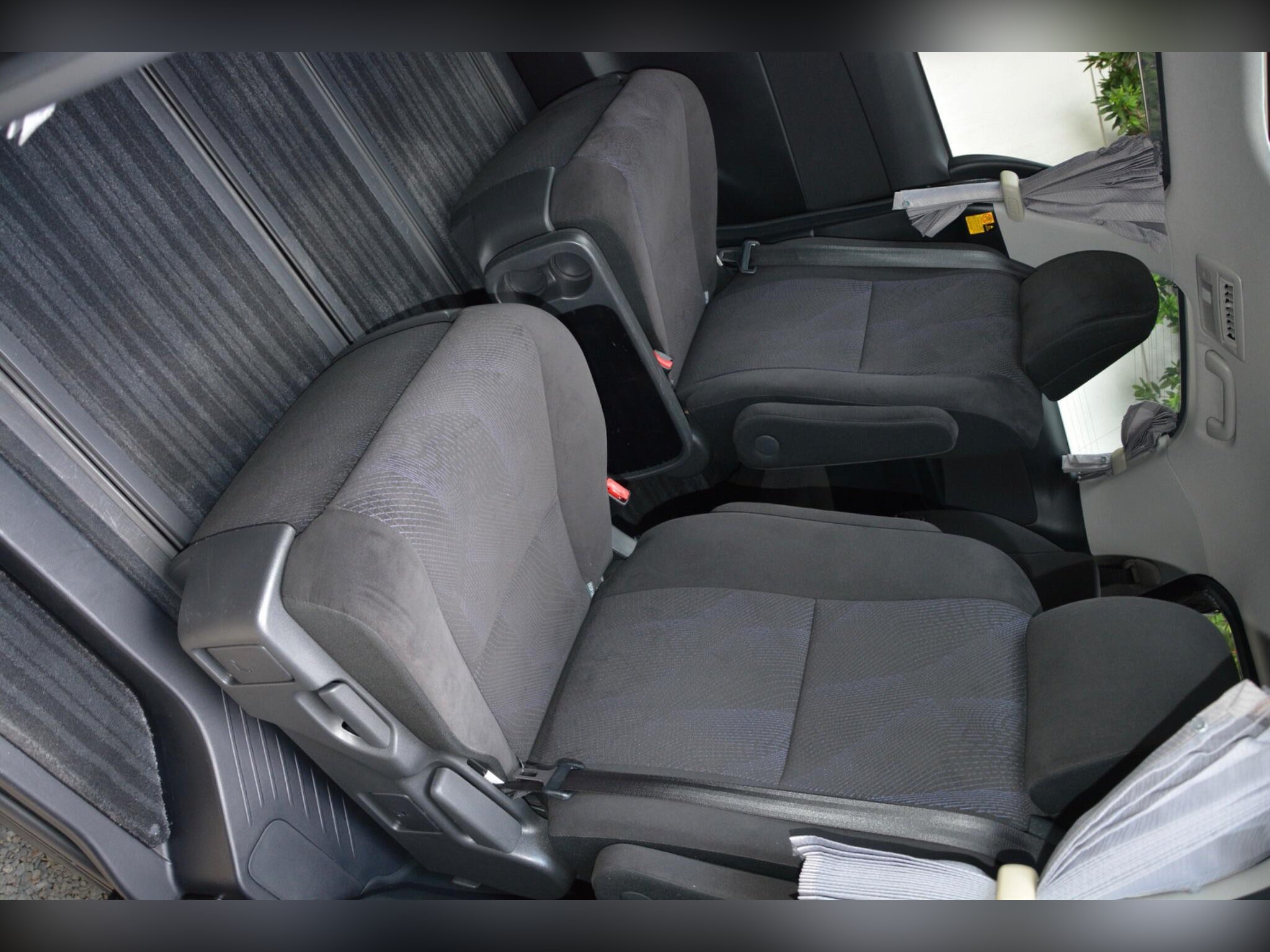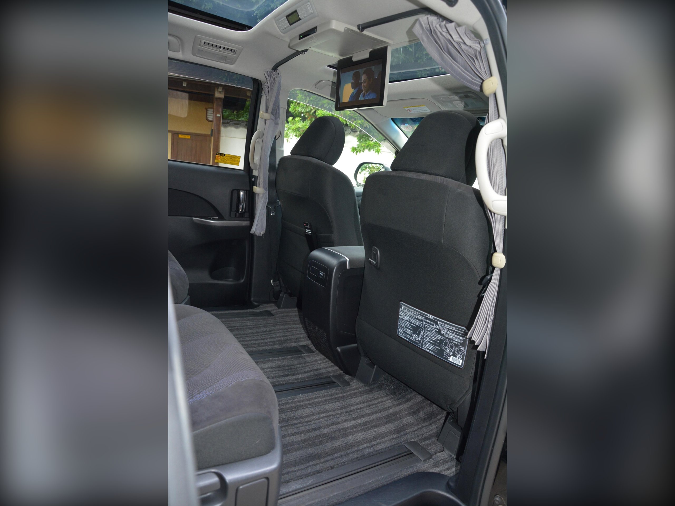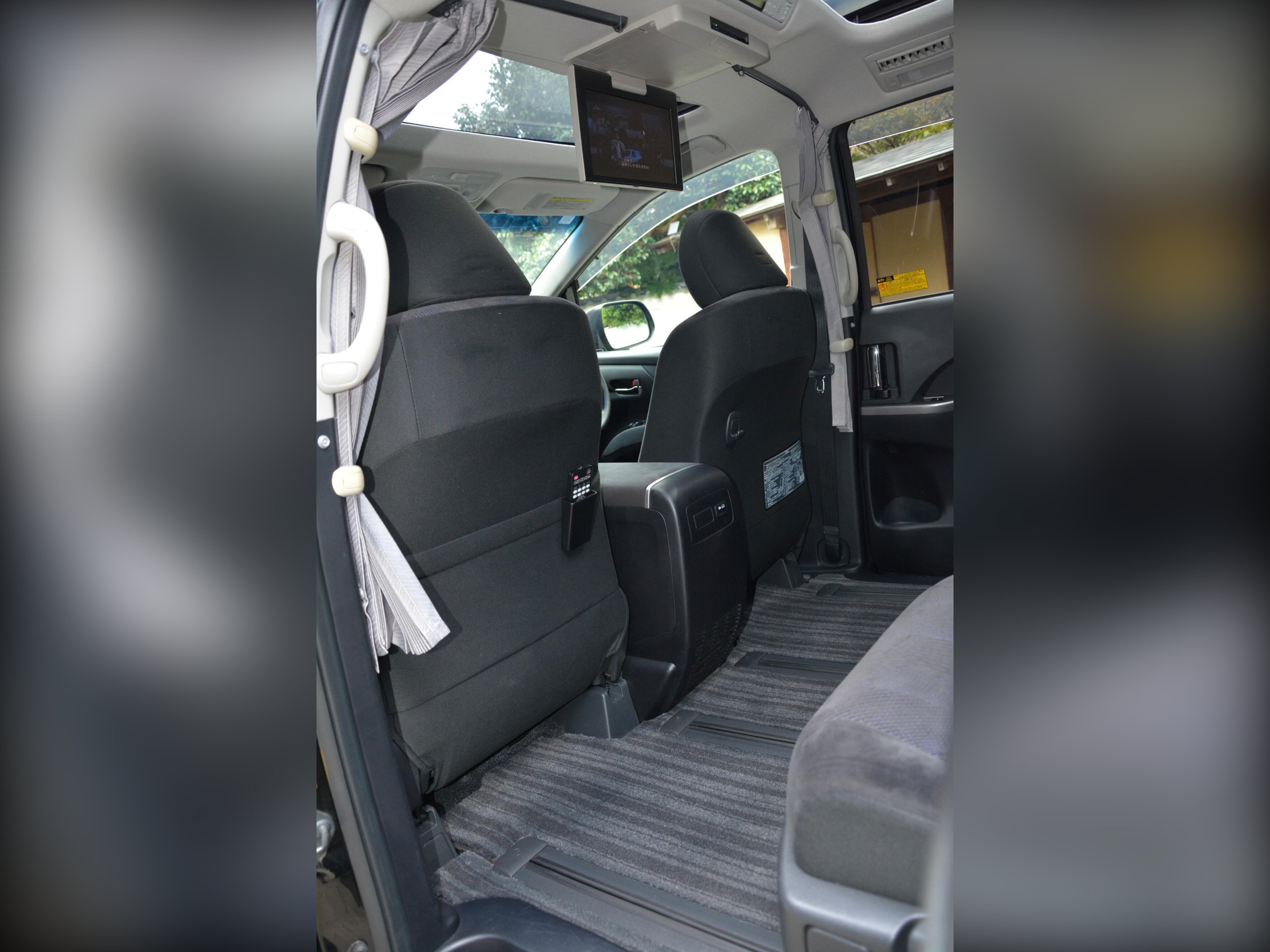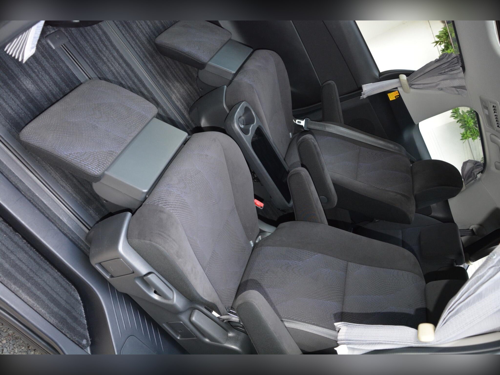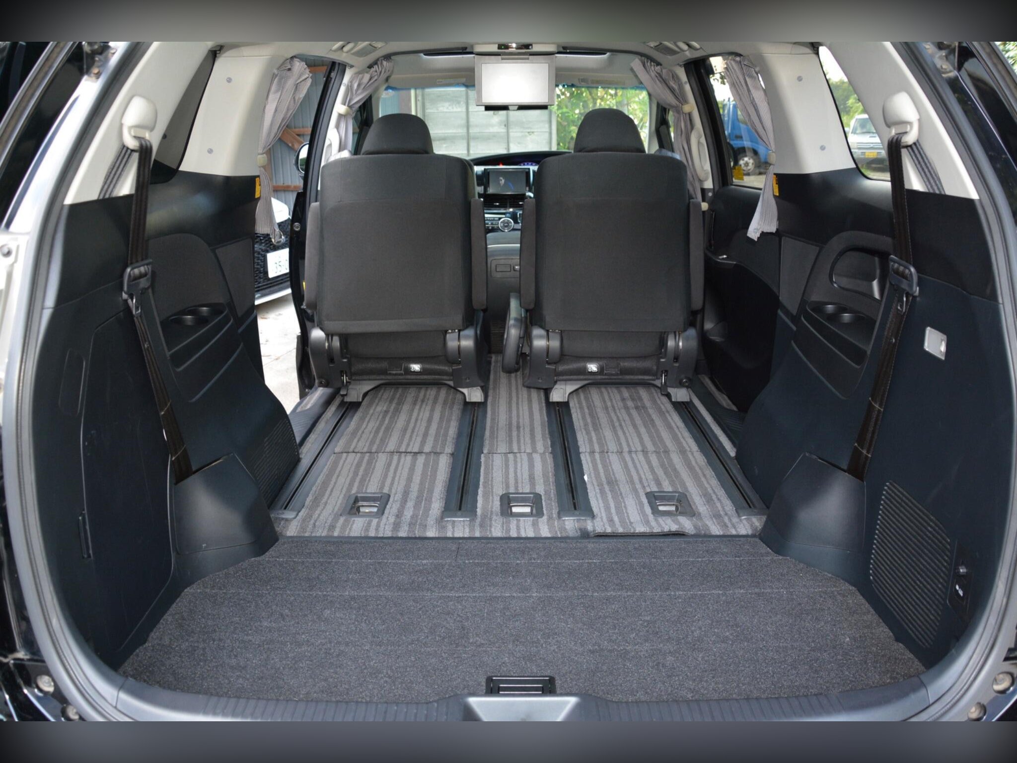 Remote power slide doors, dash monitor and flip-down rear monitor with remote. Cruise control, dual-zone climate control, traction control. Power-assisted driver seat, leather steering wheel, dealer original floor carpets. Rear boot board with cargo box. HDD/CD/Bluetooth audio system. Front, side and curtain airbags. Front, side and rear curtains.