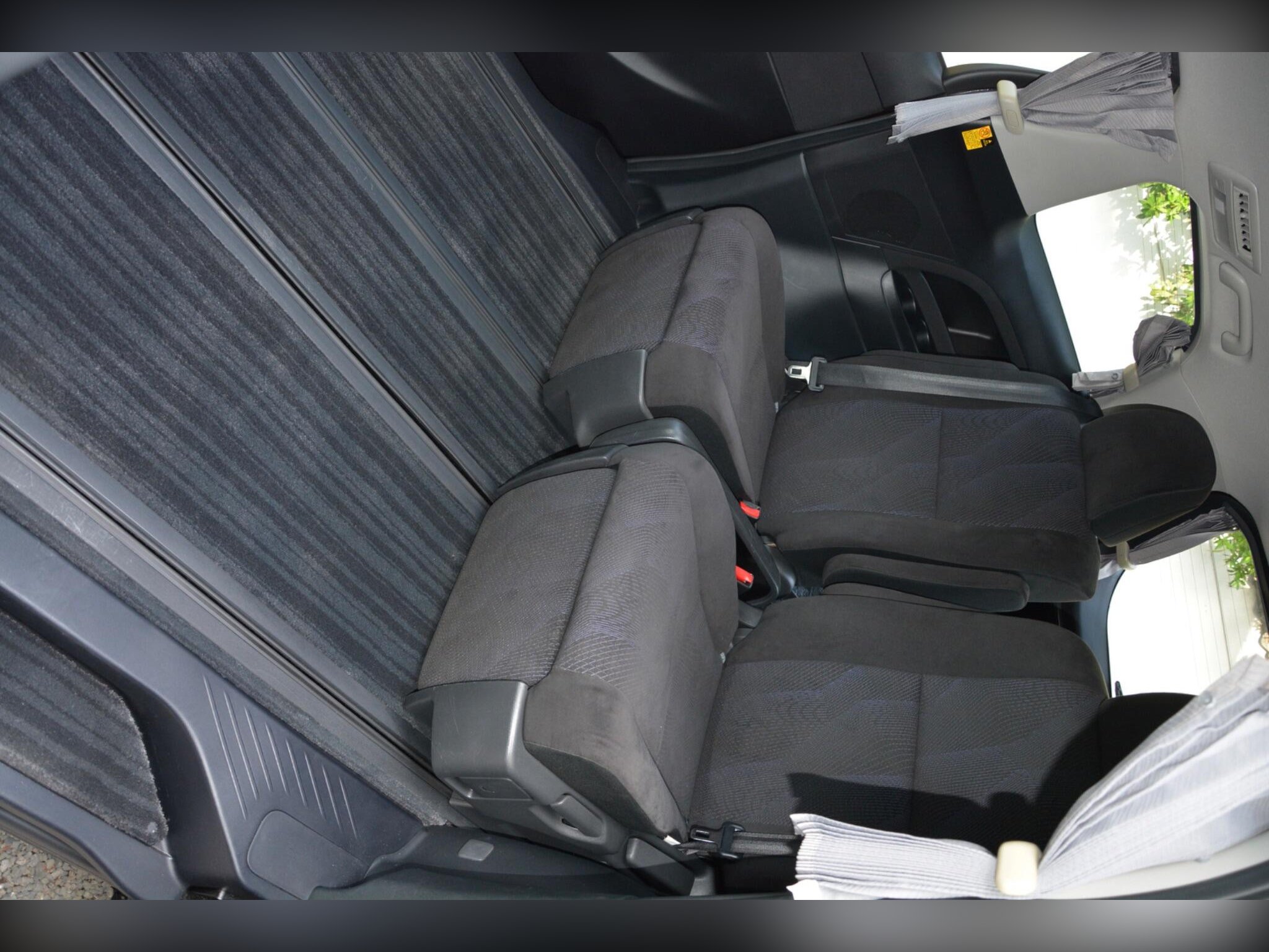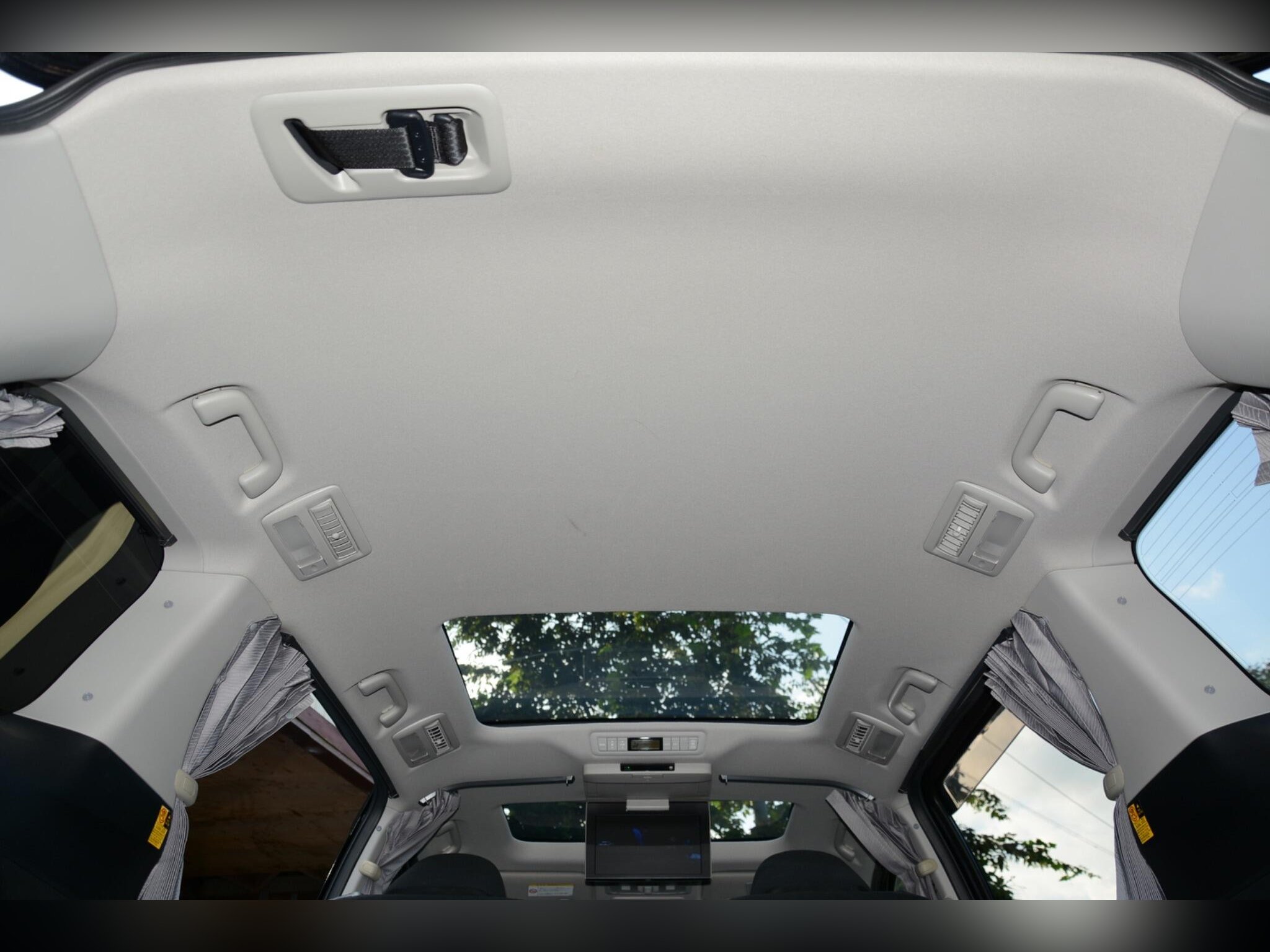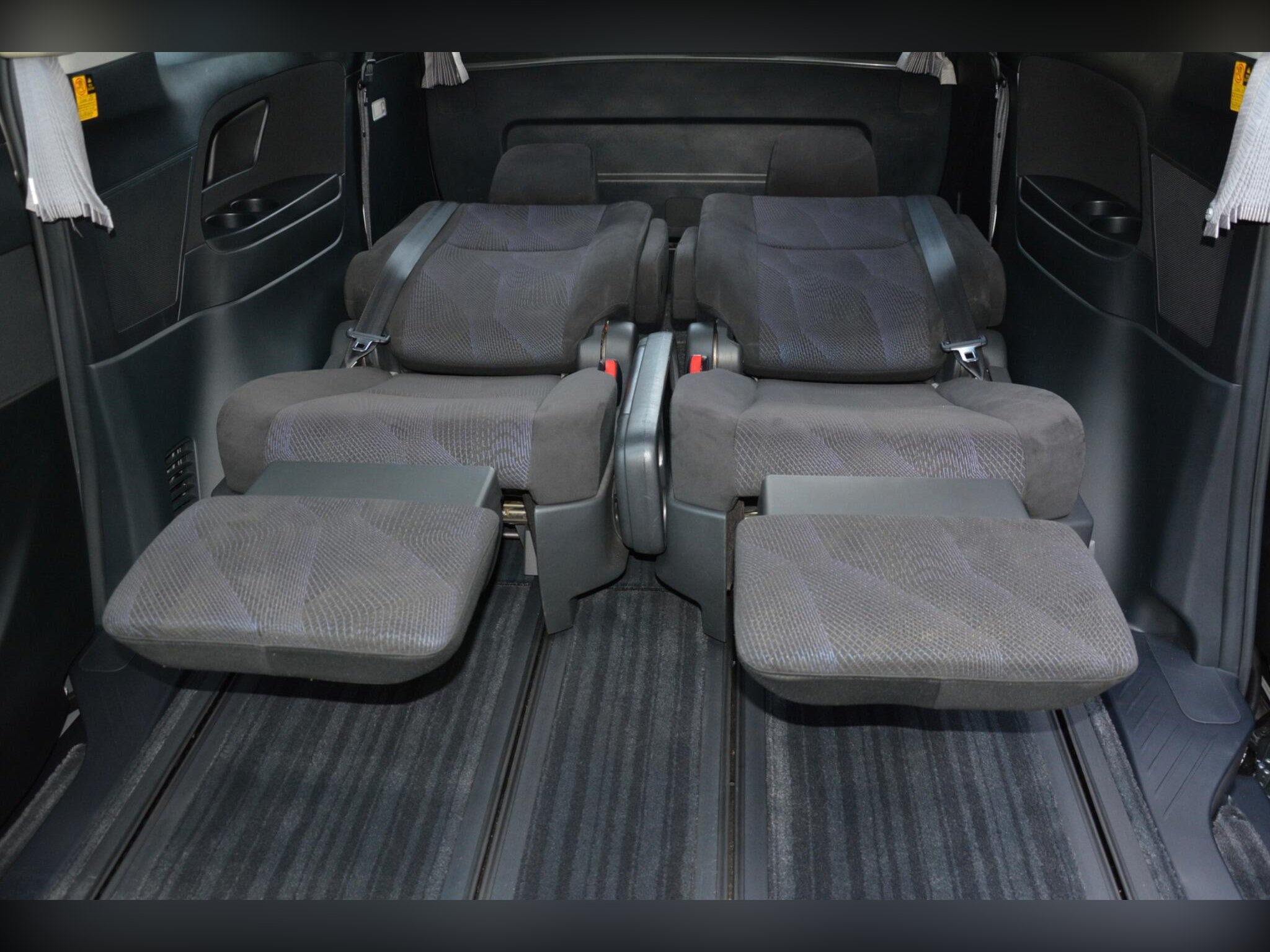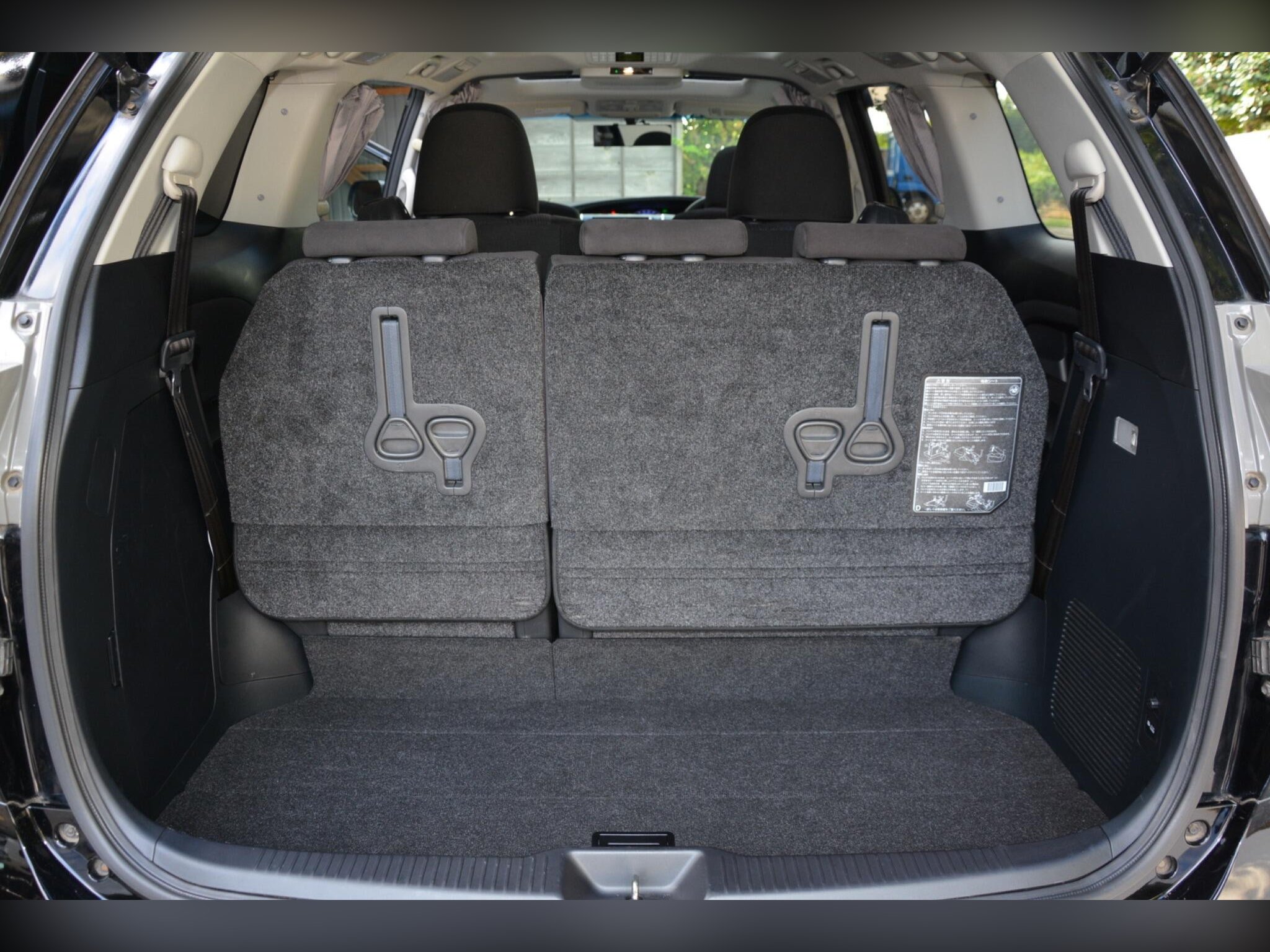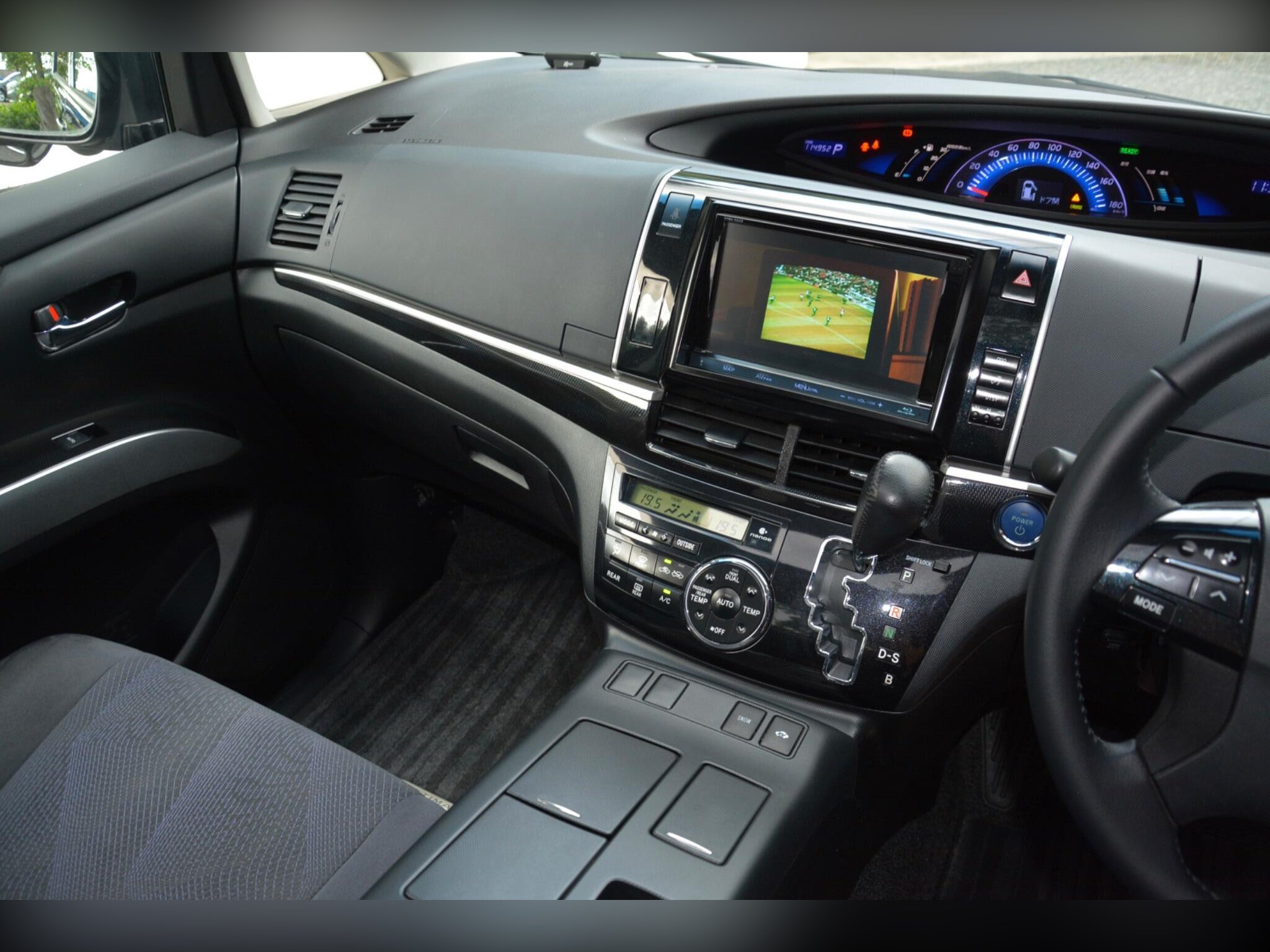 Remote power slide doors, dash monitor and flip-down rear monitor with remote. Cruise control, dual-zone climate control, traction control. Power-assisted driver seat, leather steering wheel, dealer original floor carpets. Rear boot board with cargo box. HDD/CD/Bluetooth audio system. Front, side and curtain airbags. Front, side and rear curtains.