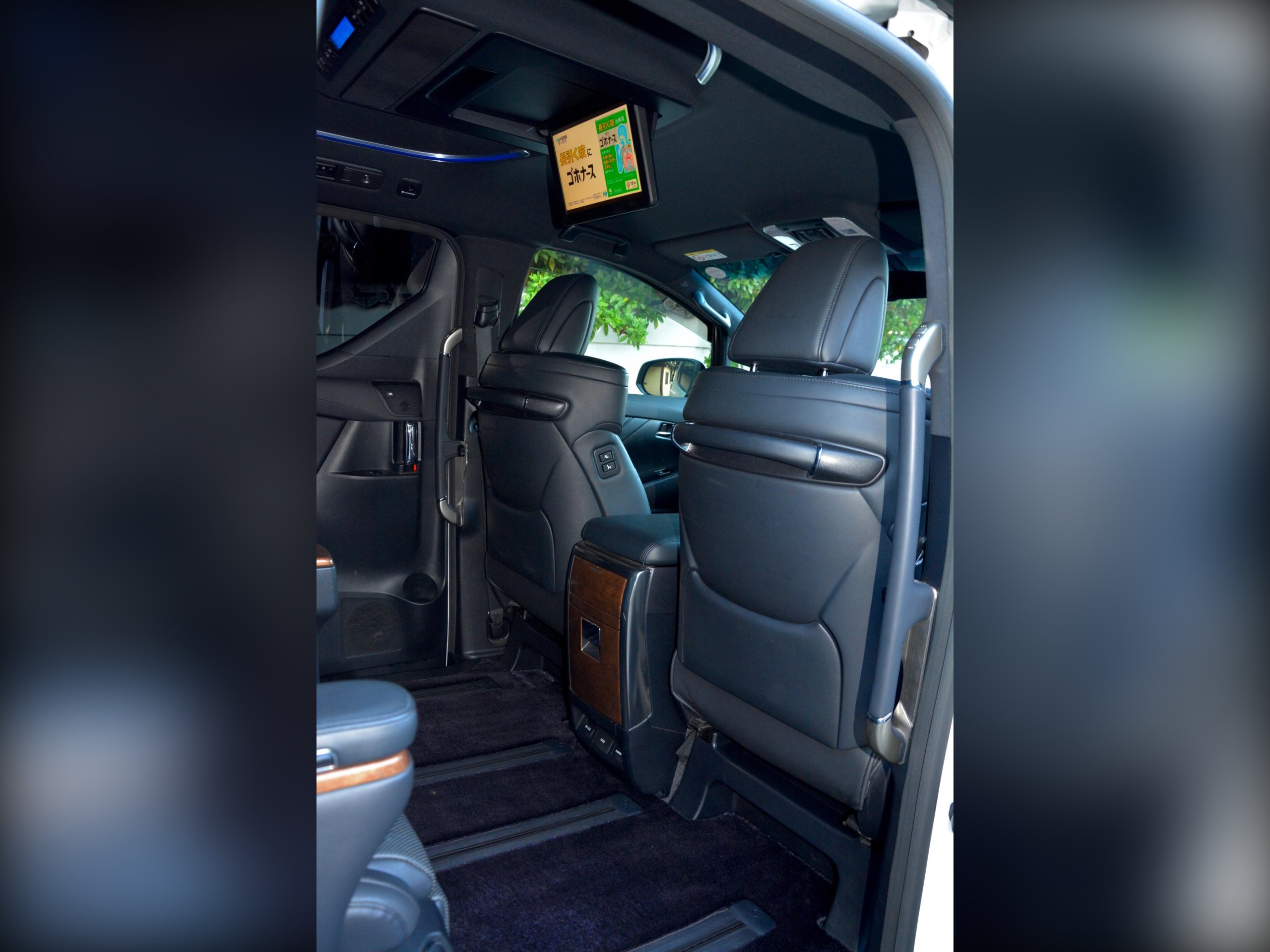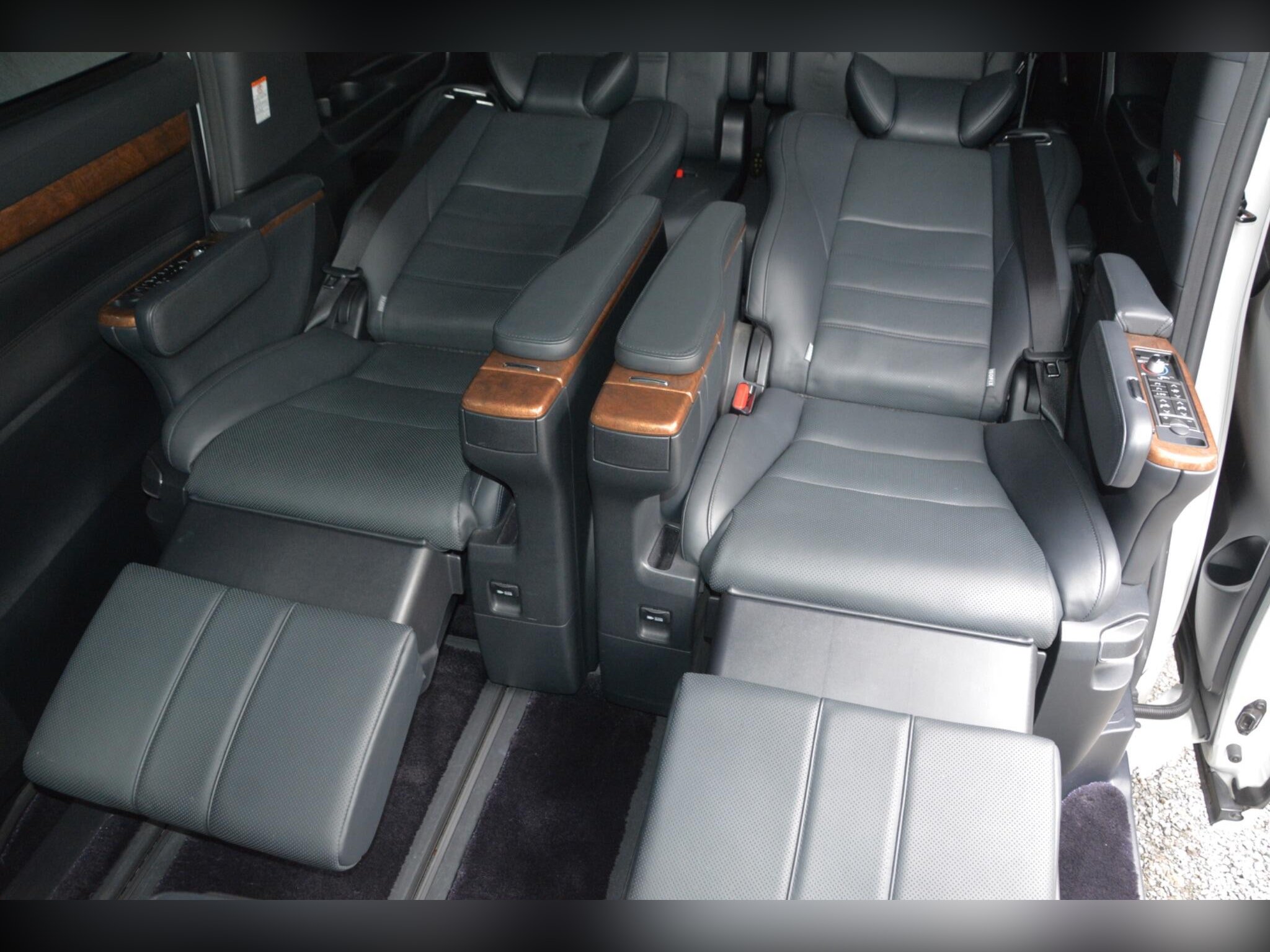 Inside you get full black leather, heated front and centre seats, ventilated centre seats, power?assisted front and centre seats, heated steering wheel, pull?out tables, built?in armrest remotes, dealer carpets and rear window pull?up shades. Factory JBL sound system, dash monitor and flip?down rear monitor with CD/SD/BT/USB. Dual climate control with Nanoe and remote. Auto mirrors, auto wipers, auto high?beam and memory driver seat. Remote engine starter included.
