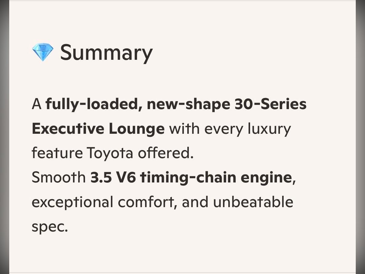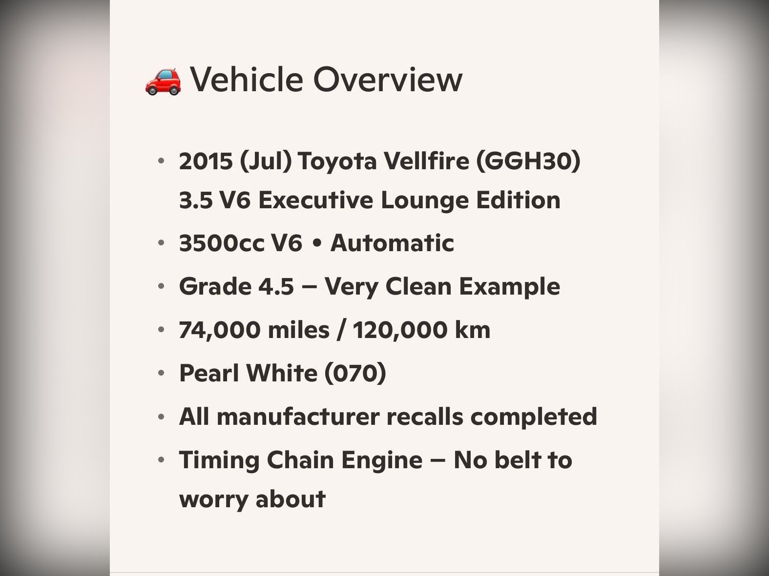 Toyota Vellfire Additional Information