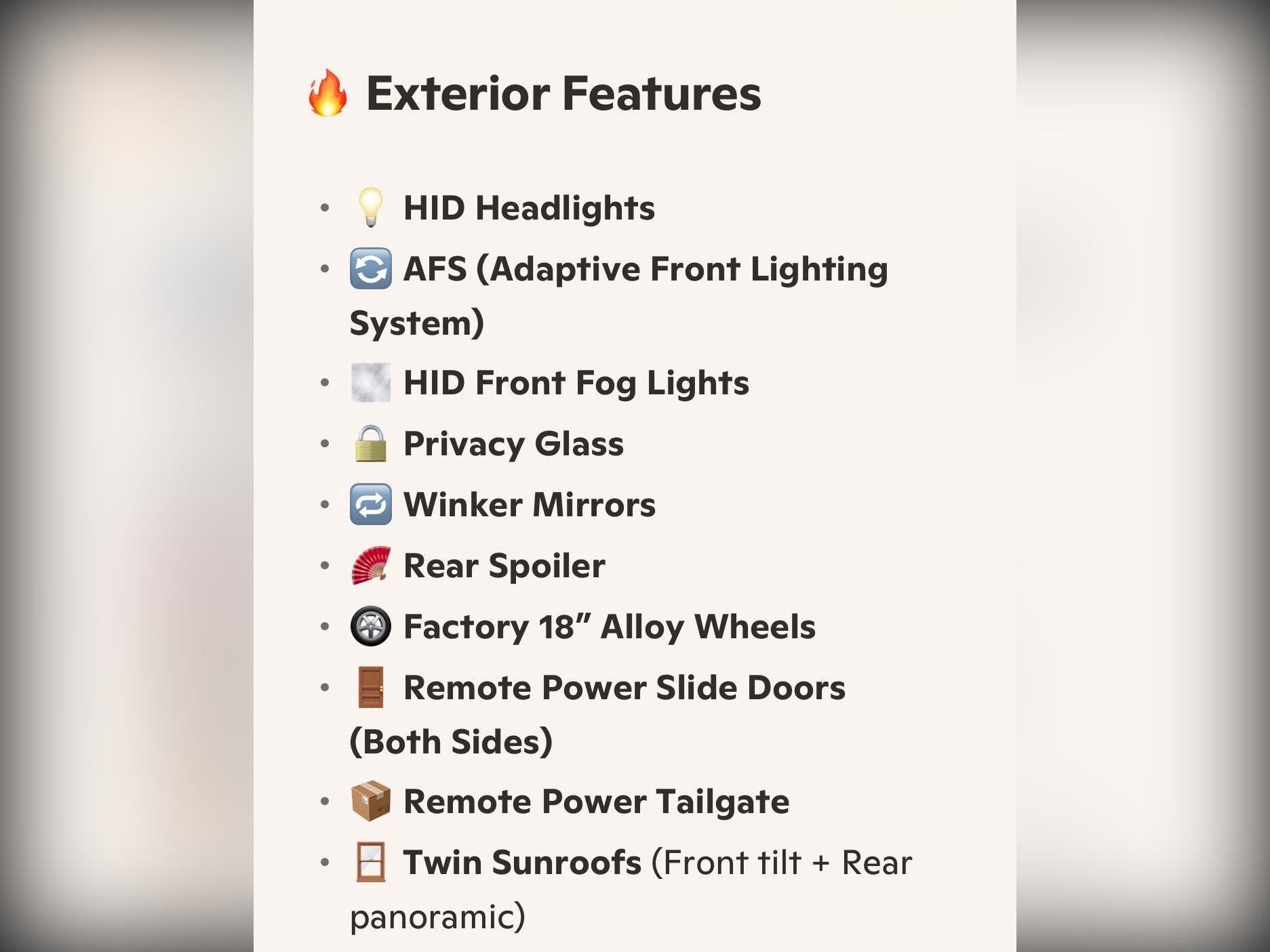 Toyota Vellfire Additional Information