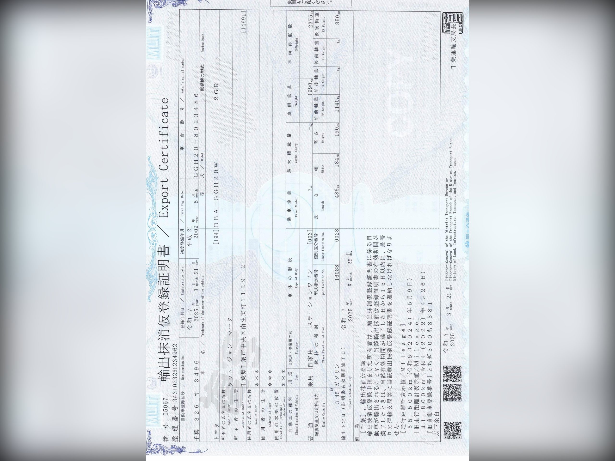 This vehicle comes with a verified VX report, equivalent to the UK HPI report, confirming no mileage discrepancies or hidden accidents. A certificate will be provided.