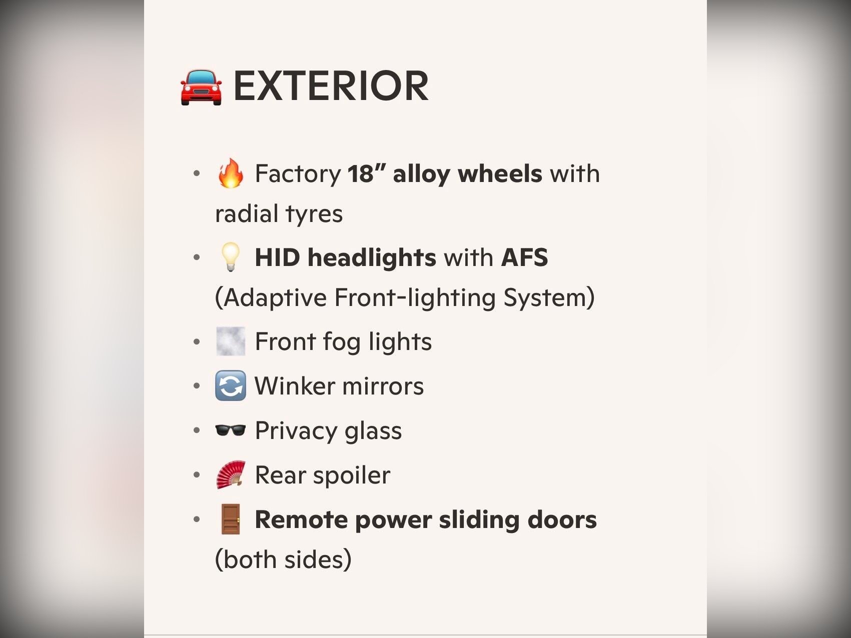 Toyota Vellfire Additional Information