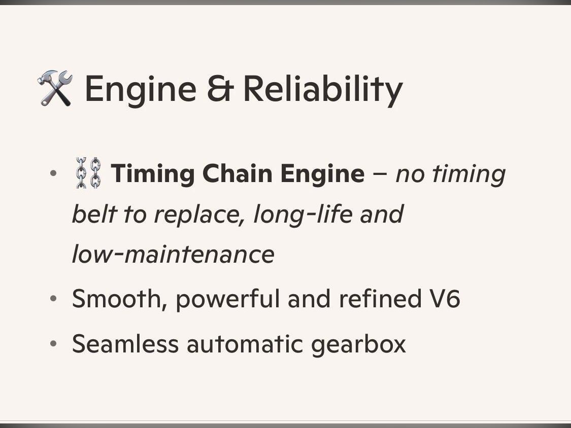 Recently MOT’d with no advisories, plus a fresh engine service and transmission service. The car drives beautifully with no warning lights after extended testing. The V6 engine is smooth and the automatic gearbox delivers seamless gear changes.