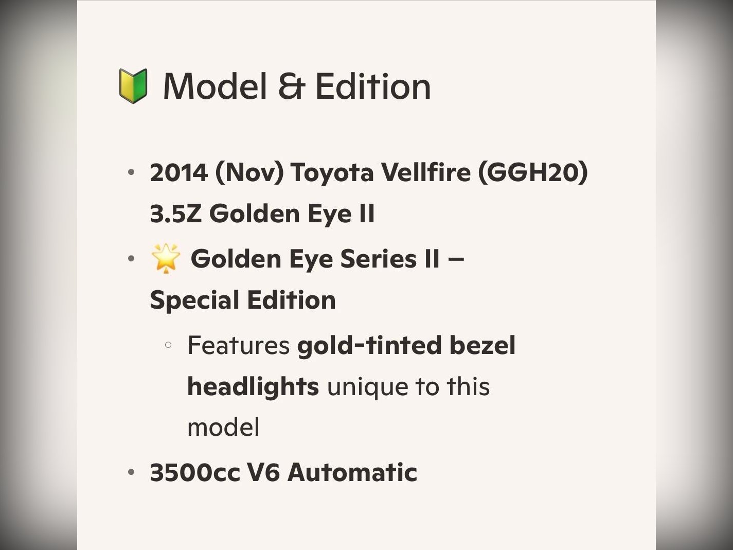 Toyota Vellfire Additional Information