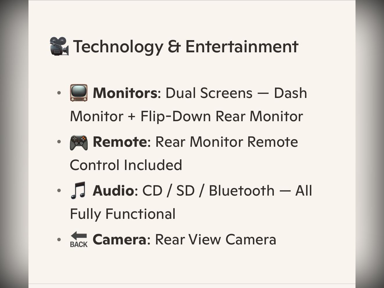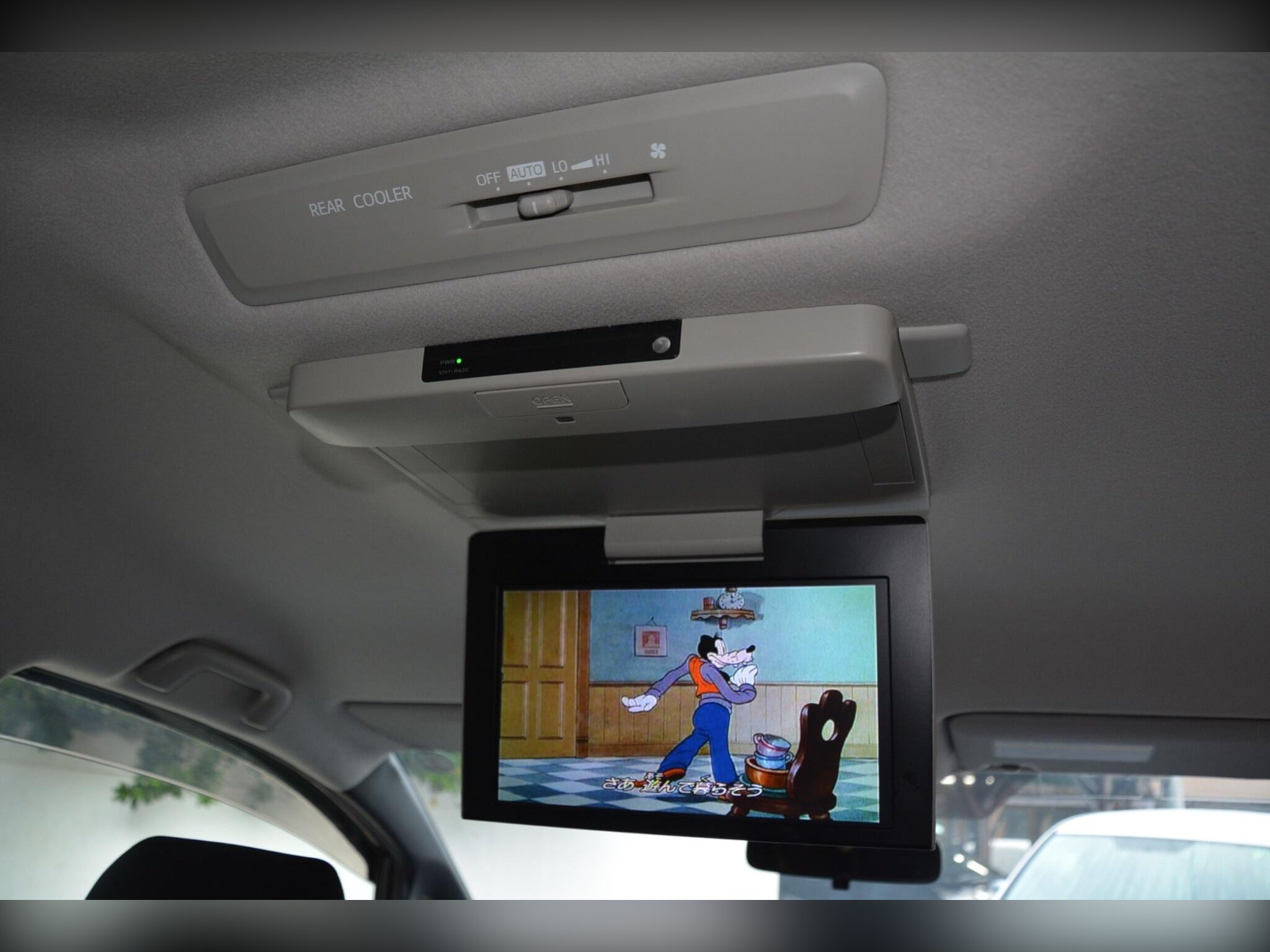 Inside, you’ll find a non-smoker interior with original dealer floor carpets, a leather steering wheel, and climate control for year-round comfort. Entertainment and connectivity are well catered for with a dash monitor, flip-down rear monitor with remote control, CD, SD card, and Bluetooth compatibility. The car also includes smart keys, auto-folding mirrors, and an idle stop function for improved efficiency.