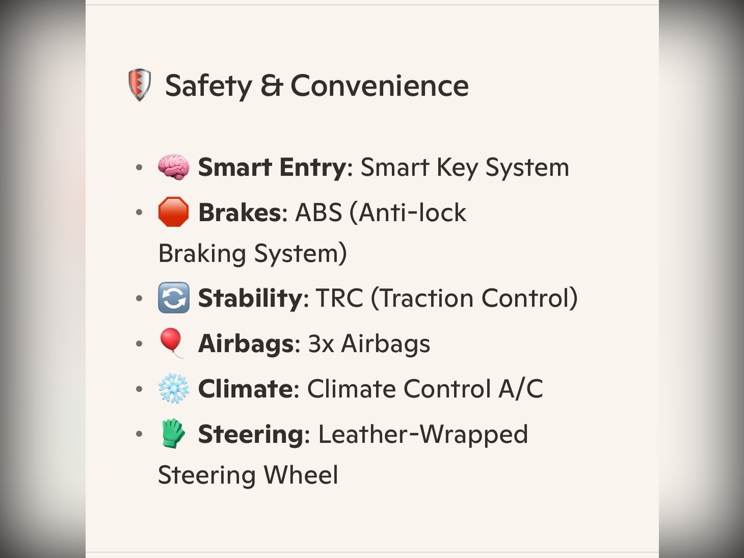 Safety features include ABS, TRC, and three airbags. All manufacturer recalls have been completed. The vehicle has just undergone a fresh MOT with no advisories, along with a full engine and transmission service. It drives beautifully with no warning lights on the dashboard and smooth, seamless gear changes from the automatic gearbox.
