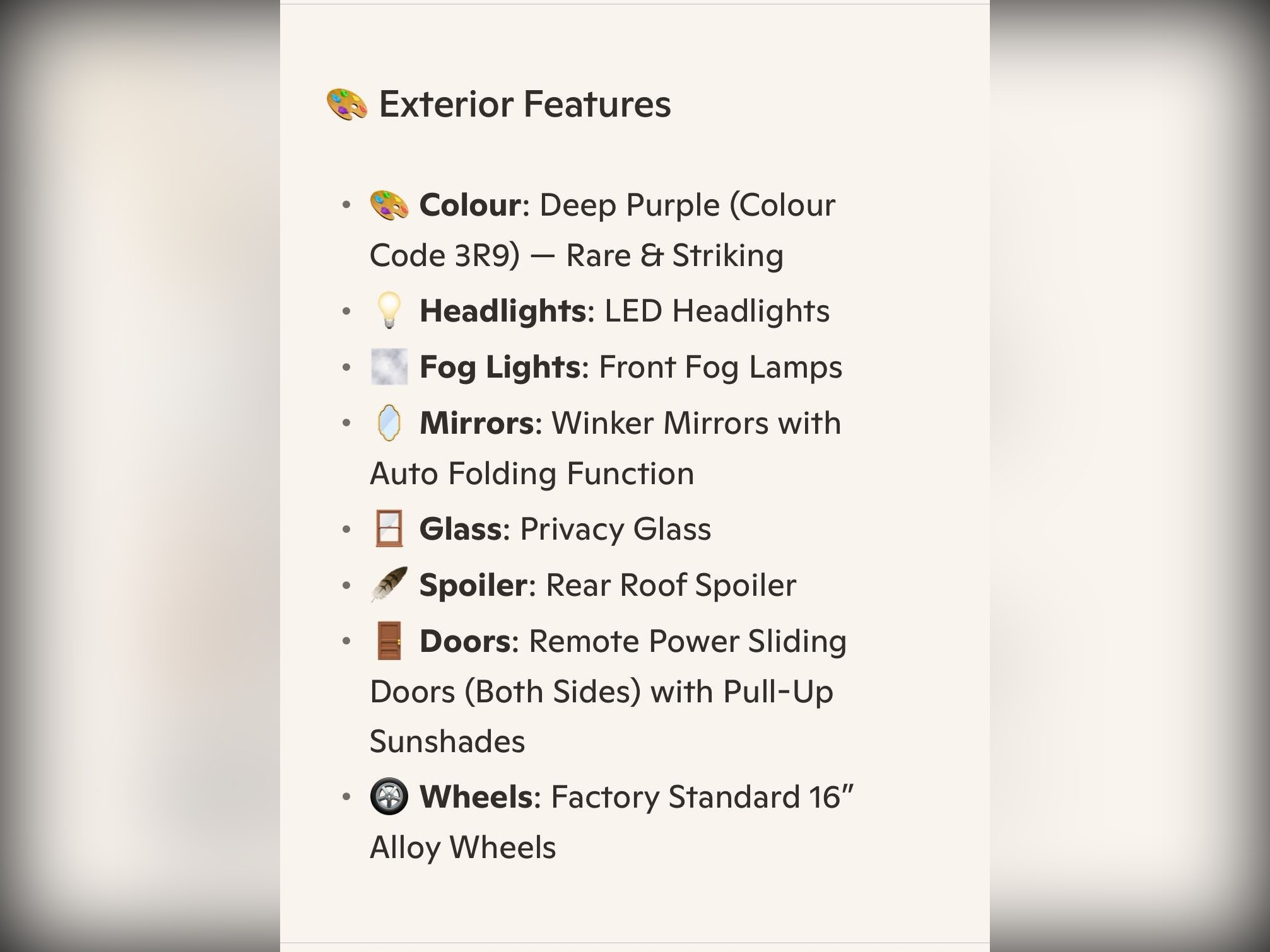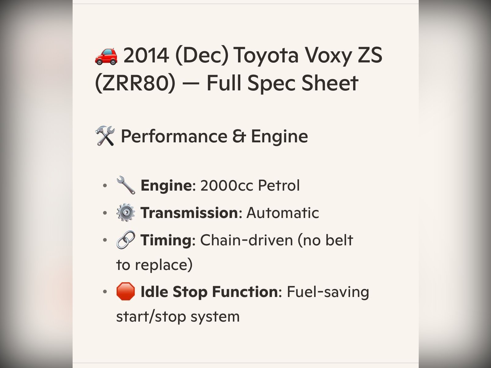 Toyota Voxy Additional Information