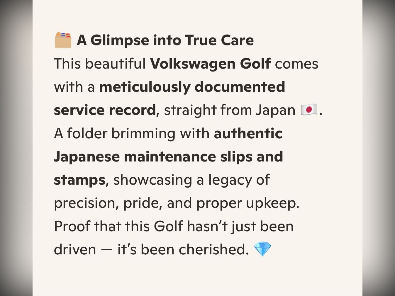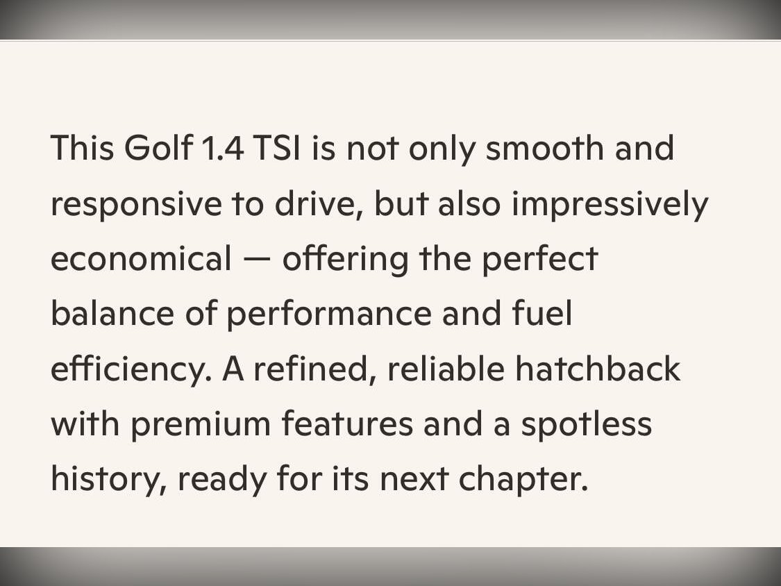 A beautifully presented 2015 (June) Volkswagen Golf 1.4 TSI Automatic (AUCPT), freshly imported from Japan with just 41,000 miles (66,000 km) and a full, documented Japanese service history. This garaged, auction grade 4.5A example is finished in striking red and drives superbly, with no warning lights and seamless gear changes from the automatic gearbox. It has just had a fresh MOT with no advisories, along with a full engine and transmission service. Factory features include LED headlights, front and rear fog lights, factory 17” alloy wheels, rear camera, front and rear drive recorders, adaptive cruise control, lane keeping assist, idle stop function, paddle shift, and climate control. Safety is well covered with front, side and curtain airbags, ABS, ESC, and EPC. Inside, the non-smoker cabin is clean and well-kept, with a leather steering wheel, dealer original floor mats, rear boot board, and full media support including CD, SD, HDD, Bluetooth and USB. All manufacturer recalls have been completed. A verified VX report (Japan’s equivalent to the UK HPI) confirms no mileage discrepancies or hidden accidents, and a certificate will be provided. The price includes a 12-month nationwide PREMIER warranty from a leading UK provider, covering over 8,000 mechanical and electrical components (parts and labour), plus 12 months AA breakdown cover. Every vehicle from Wanstead Carriages undergoes a rigorous multi-point pre-delivery inspection and is HPI checked, with a certificate provided. AA/RAC inspections welcome. We are proud to be part of the AA Cars Standards, approved by the Chartered Trading Standards Institute, so you can buy with confidence. Please mention Stock ID IM 437 when calling.