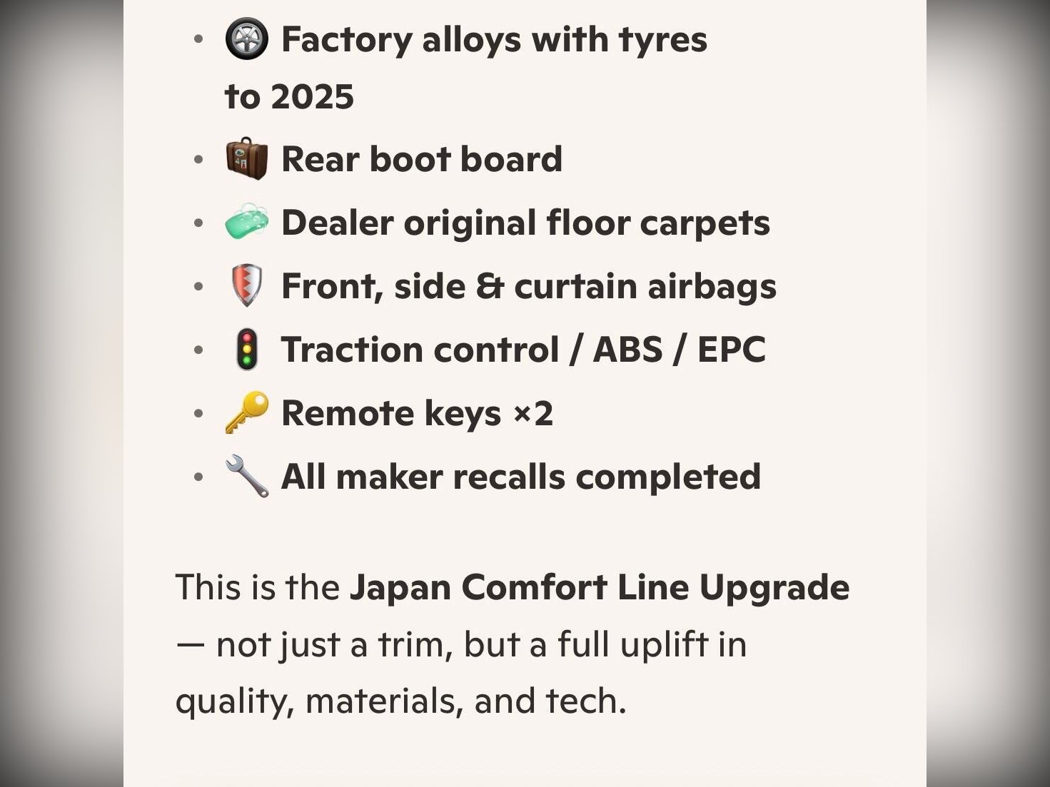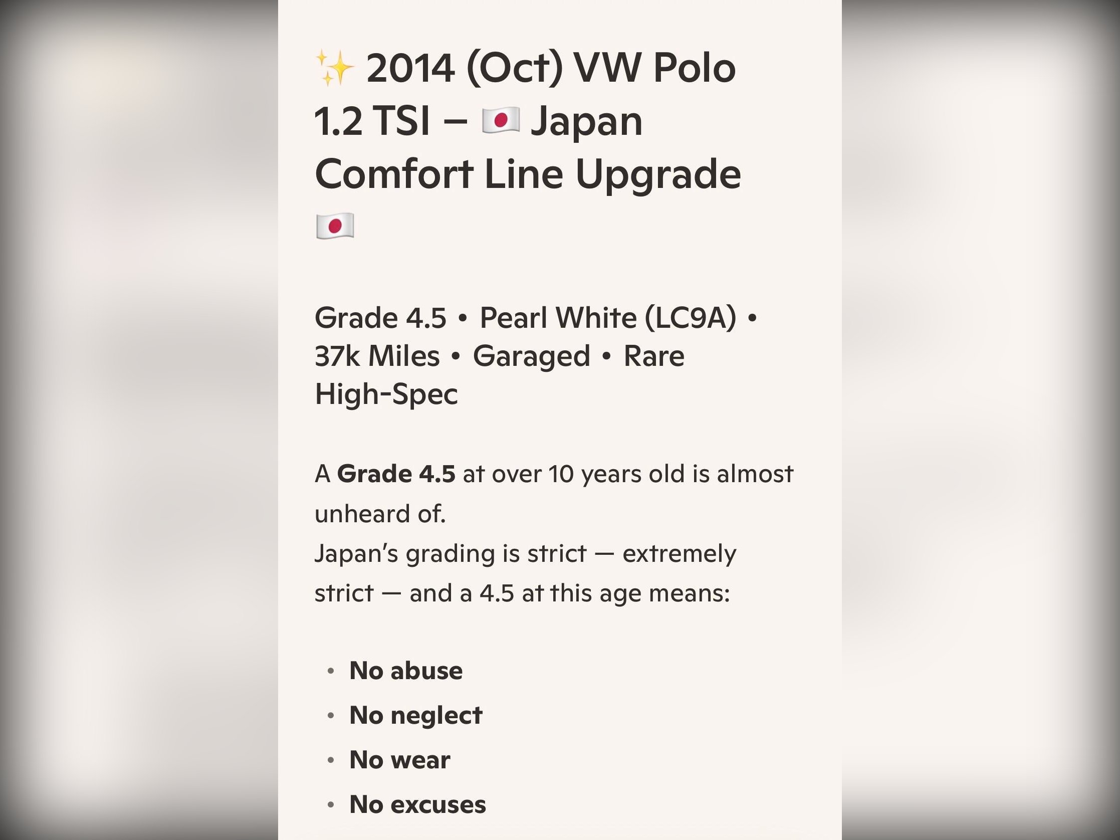 Mileage is verified at 37,000 miles (59,000 km) with a VX report, Japan’s equivalent to the UK HPI, confirming no hidden accidents or mileage issues. A printed certificate is supplied.