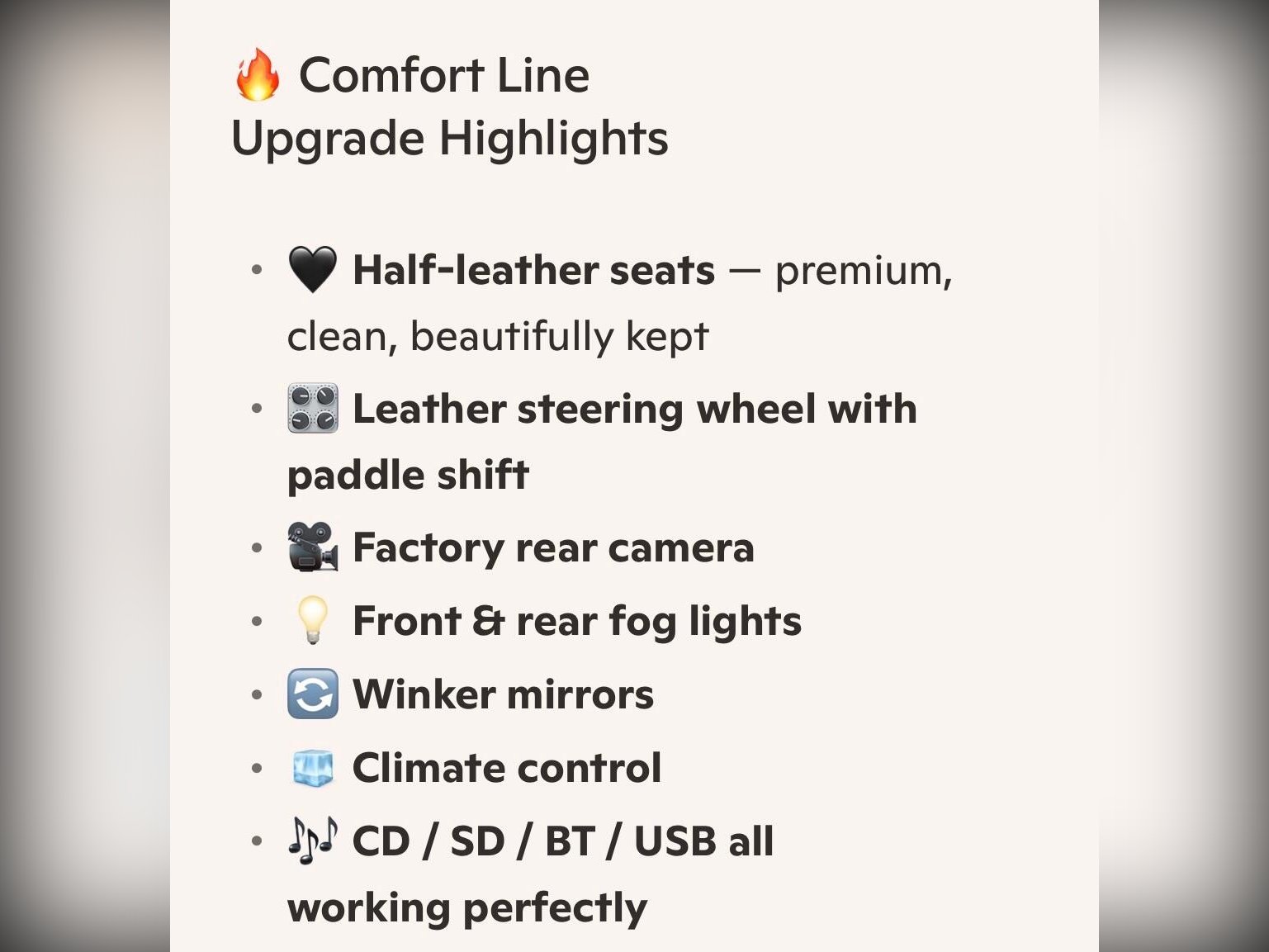 Factory specification includes: front and rear fog lights, winker mirrors, factory alloys with 2025 tyres, rear camera, half?leather seats, Heated seats,leather steering wheel, paddle shift, climate control, idle stop function, traction control, ABS, EPC, front/side/curtain airbags, CD/SD/Bluetooth/USB, dealer original floor carpets, rear boot board and two remote keys. All manufacturer recalls have been completed.