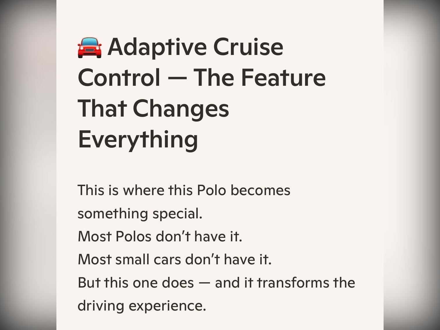 A beautifully kept, low?mileage example with the desirable Comfort Line Upgrade Package. The Volkswagen Polo has long been praised for its build quality, reliability and refined driving feel. The 1.2 TSI engine is one of VW’s best small petrol units — smooth, economical and surprisingly punchy, making it ideal for both city use and motorway cruising. This model also benefits from speed?adaptive radar cruise control, a feature normally found on much larger premium cars. It maintains distance automatically, making long journeys calmer, safer and far more relaxing.
